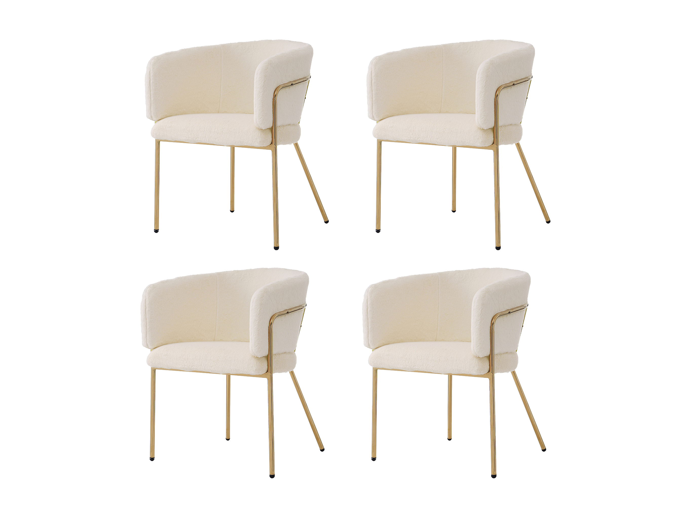 Zestaw 4 luksusowych krzeseł wypoczynkowych ze sztucznego futra - 77 x 57 x 57 cm - Fotel toaletowy - Cztery metalowe nogi - Beżowy