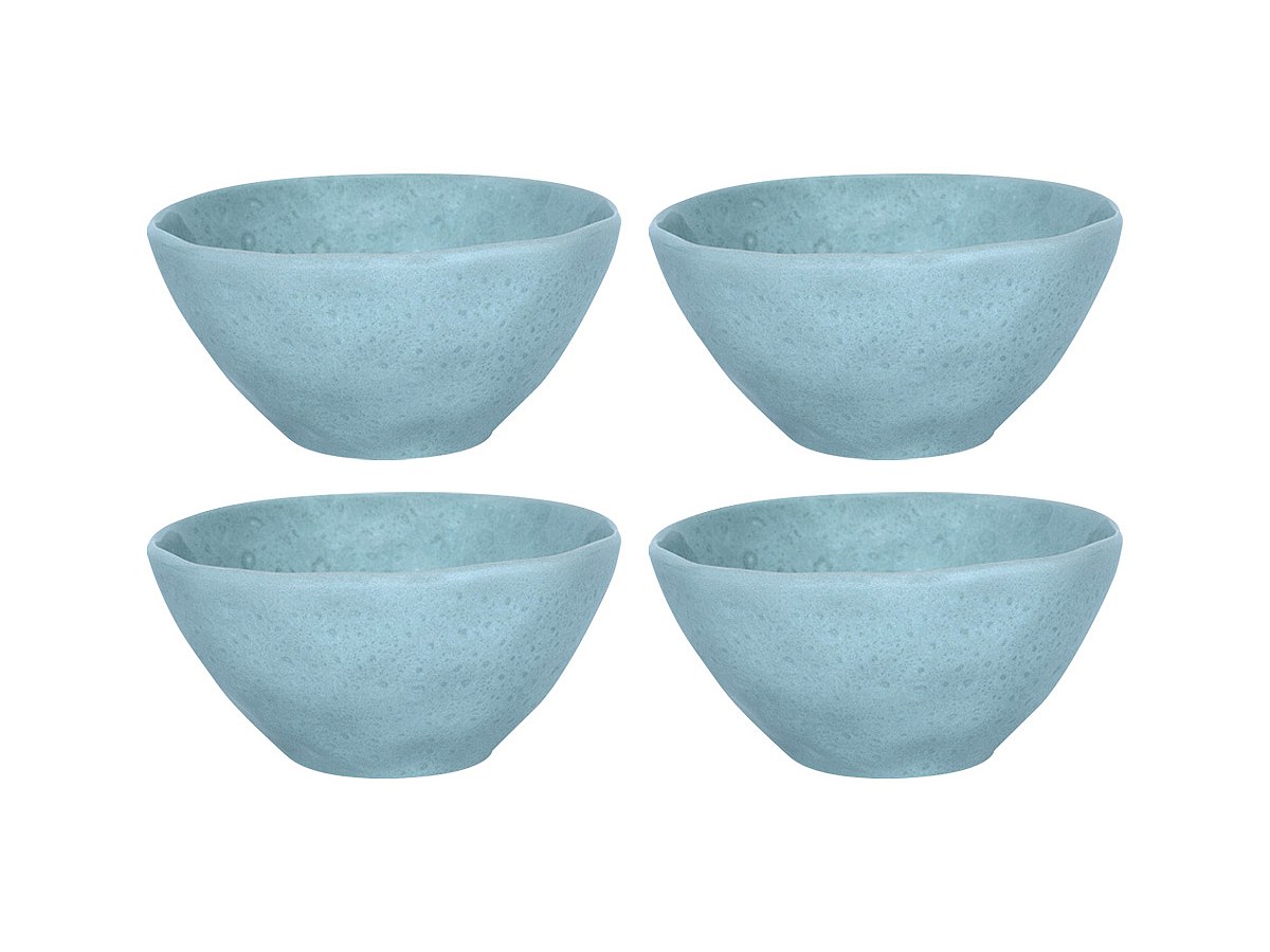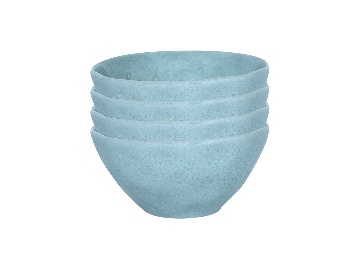 Zestaw 4 misek z młotkowanego fajansu OLGA - Śred.15 cm - Kolor jasnoniebieski