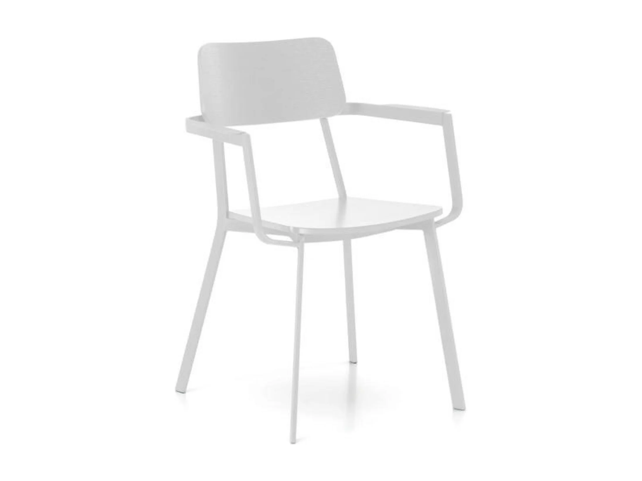 Zestaw 4 nowoczesnych białych krzeseł z lakierowanego drewna "Estia" z podłokietnikami i metalową ramą cm 51,5x61 82h