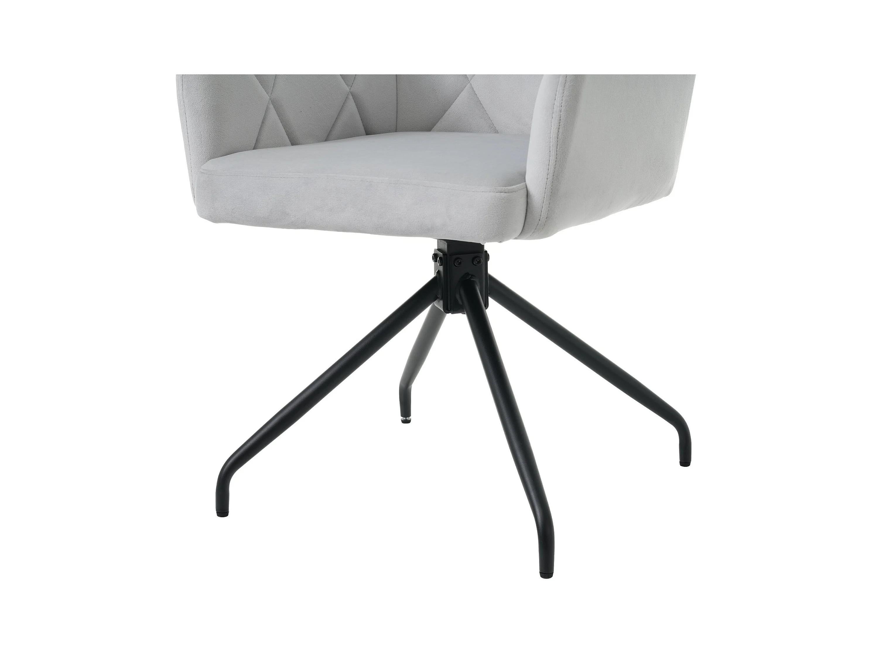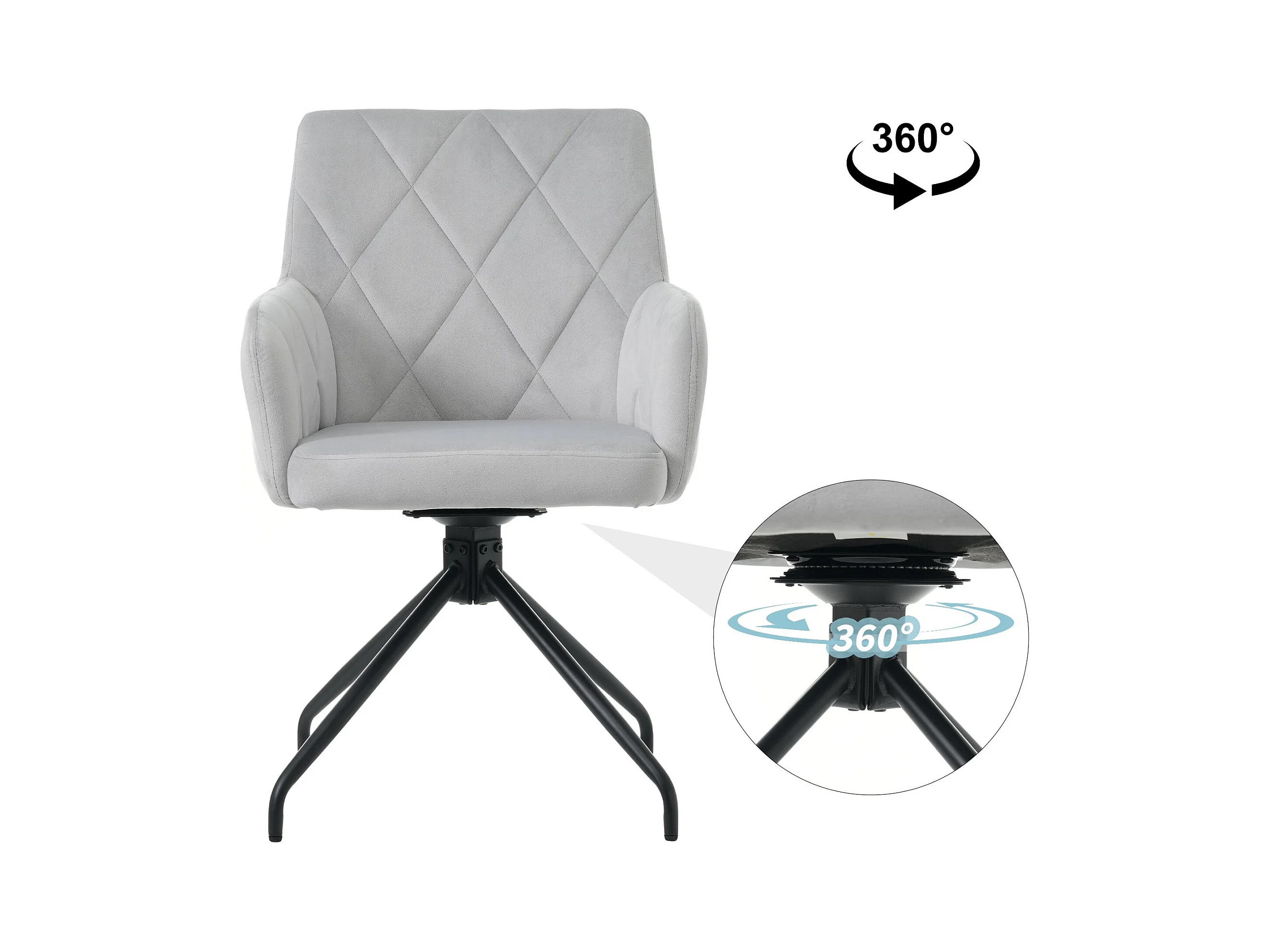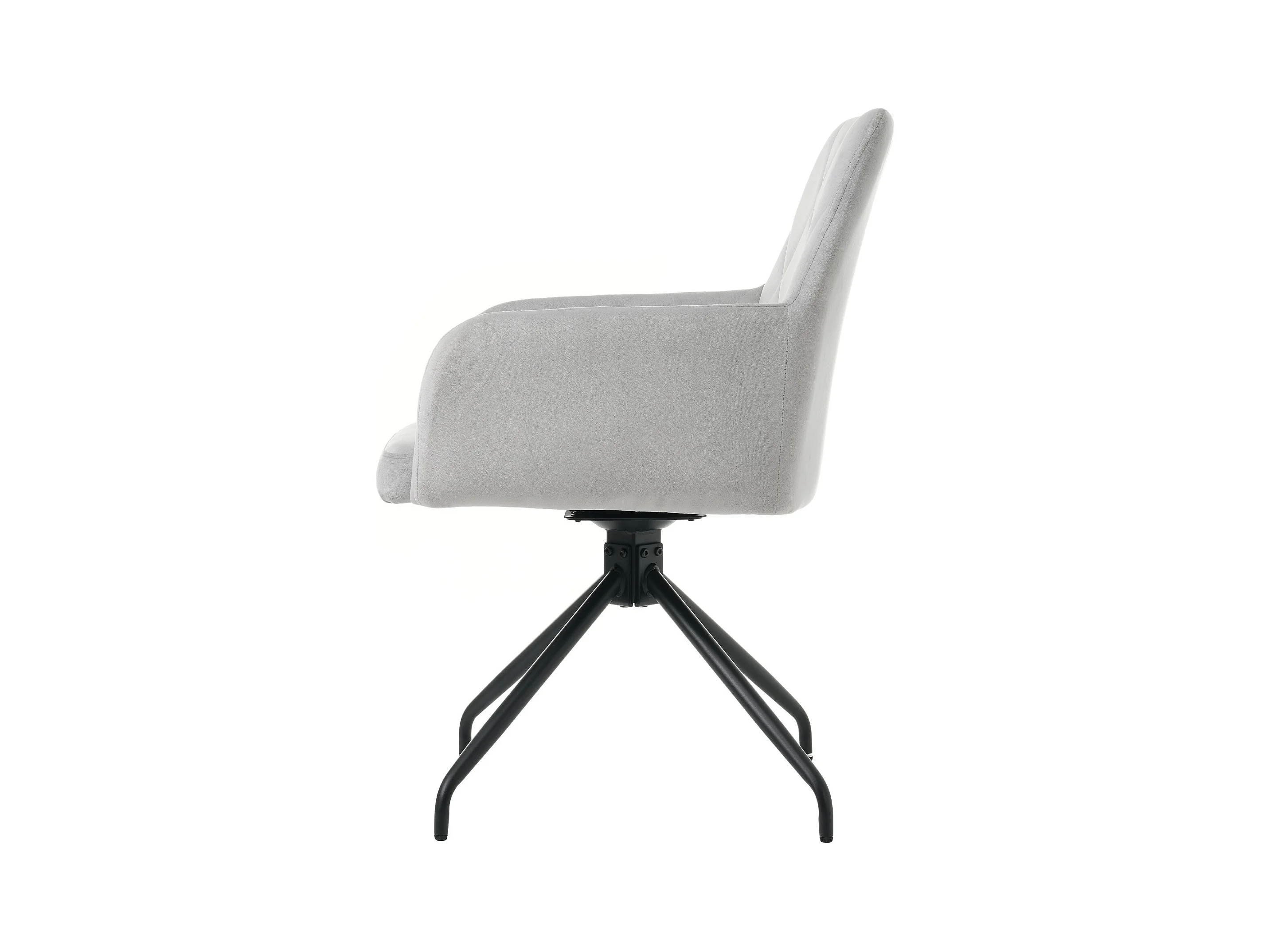 Zestaw 4 obrotowych krzeseł do jadalni, szary aksamit, krzesło z podłokietnikami i oparciem, nogi metalowe