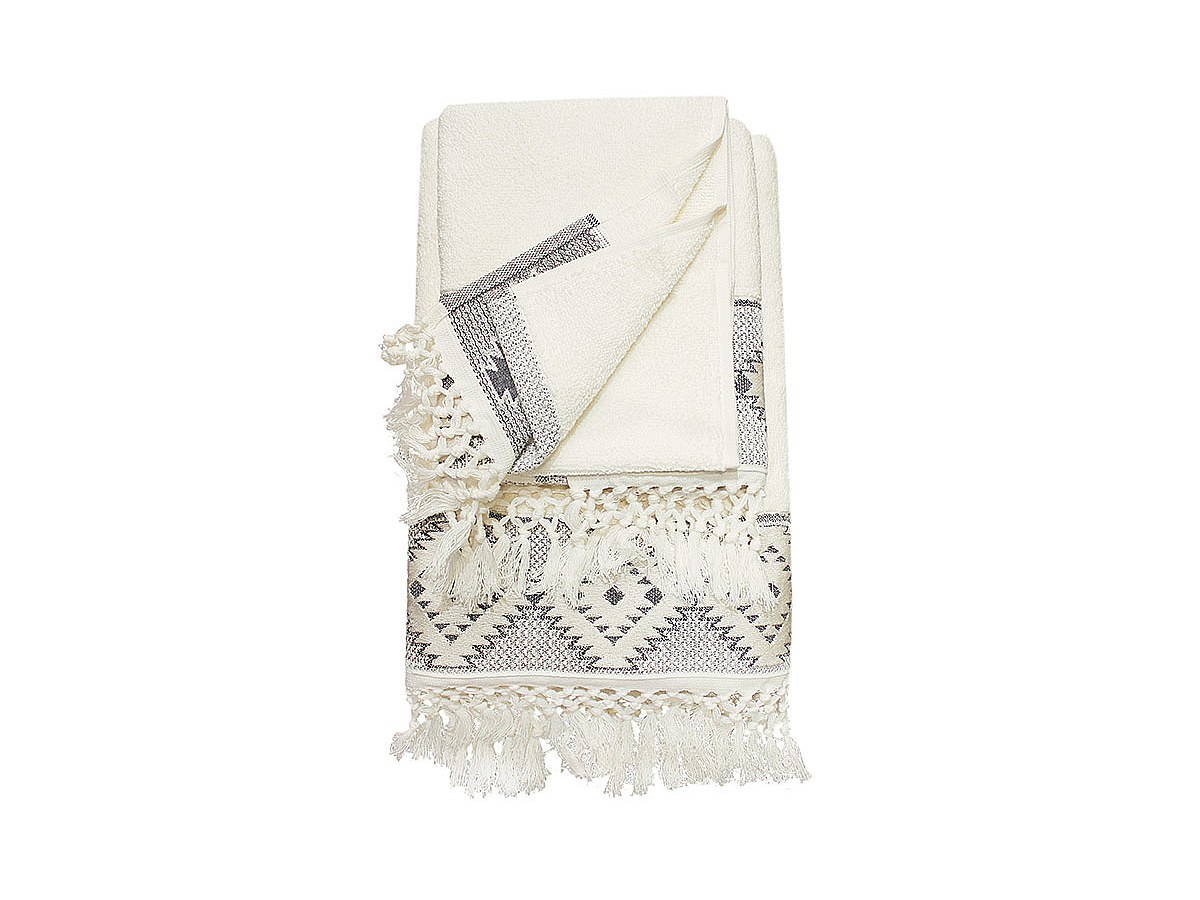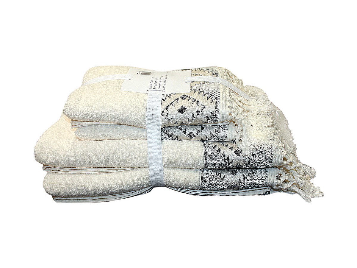 Zestaw 4 ręczników kąpielowych LORENA w stylu berberyjskim – 2 małe 50 × 90 cm i 2 średnie 70 × 140 cm – kolor kremowy i czarny