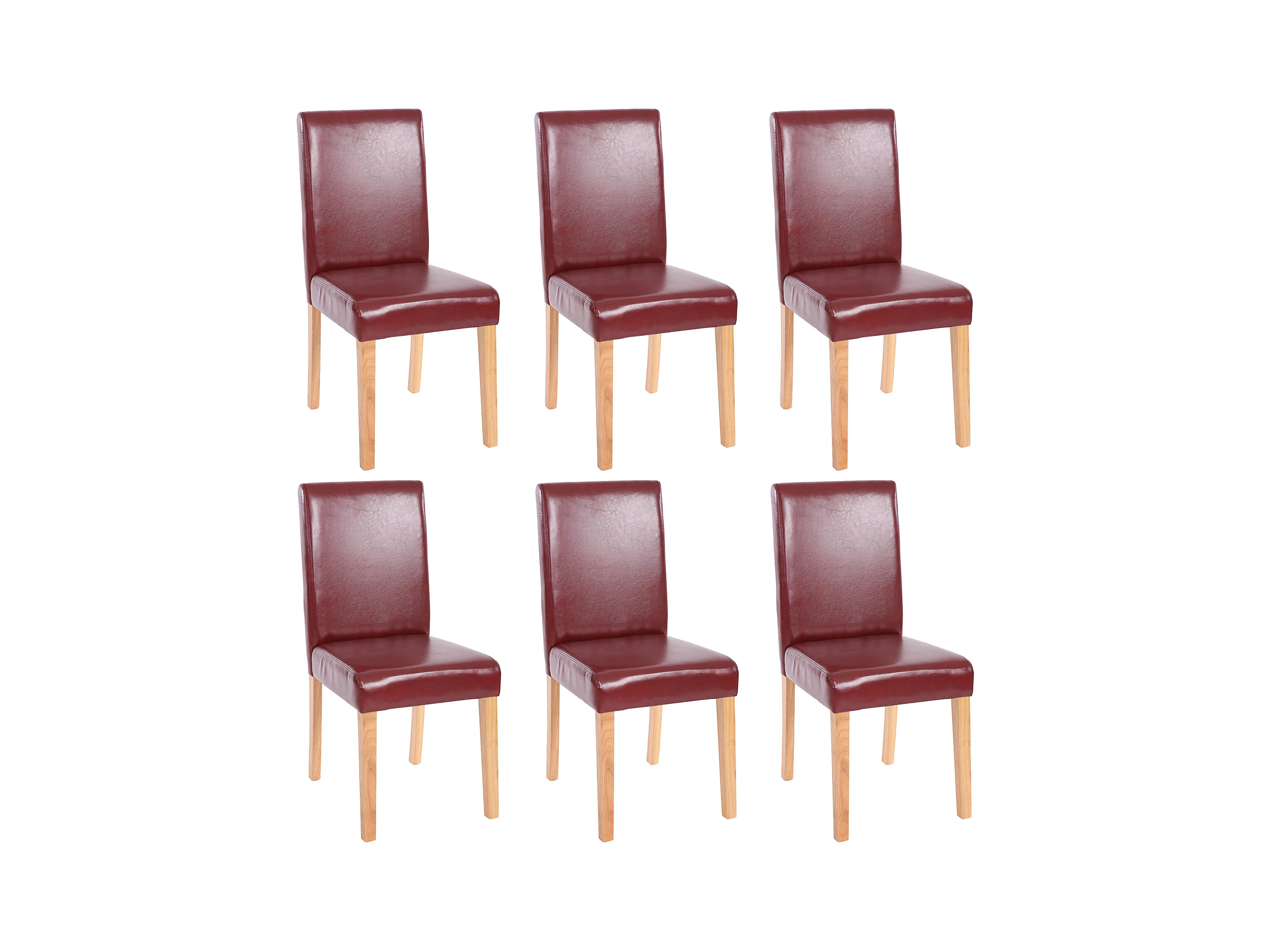 Zestaw 6 krzeseł do jadalni Littau ze sztucznej skóry, imitacja skóry, czerwono-brązowy, jasne nogi