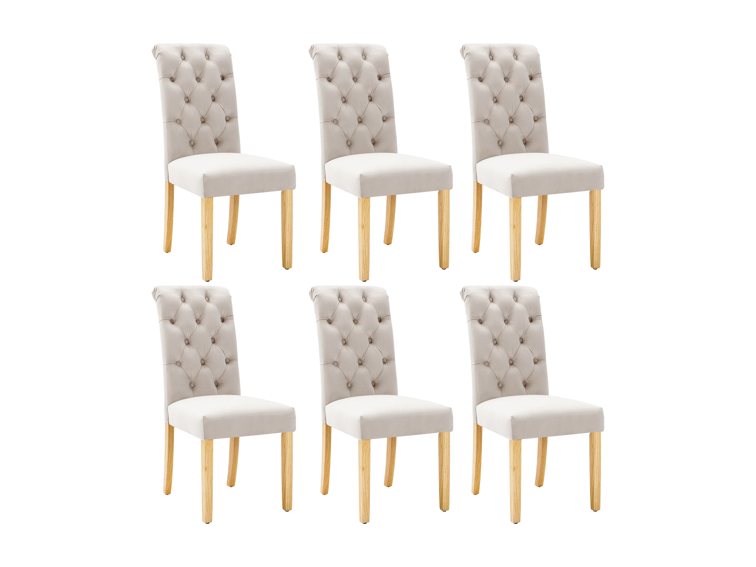 Zestaw 6 krzeseł do jadalni z aksamitu - 49 x 61 x 100 cm - nogi dębowe - do sypialni i salonu - beżowe