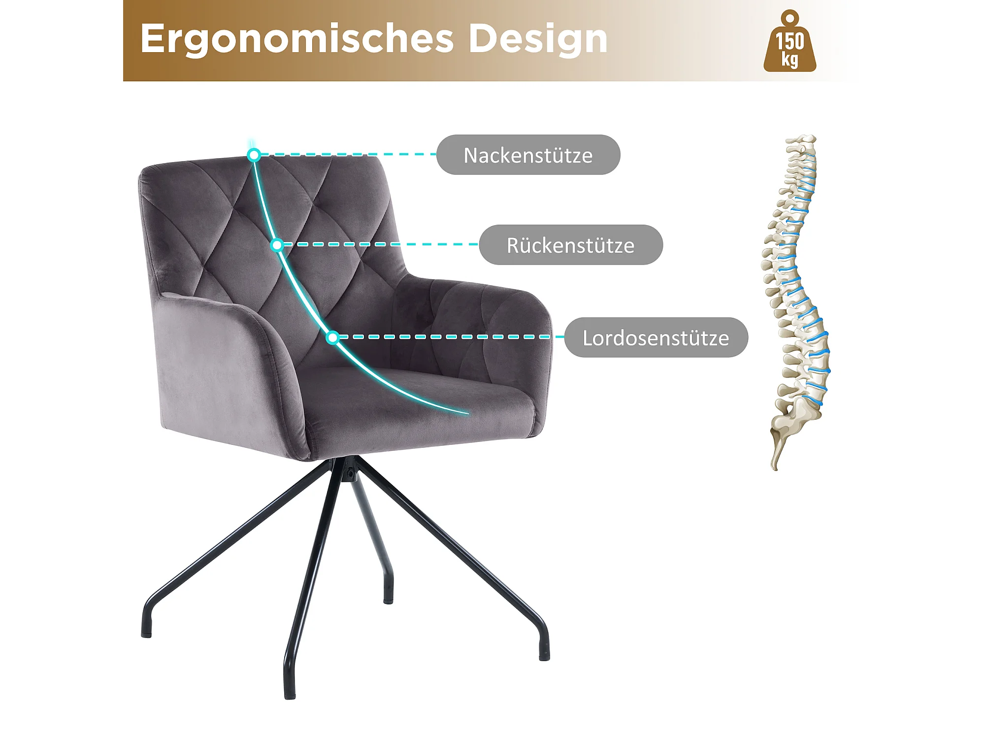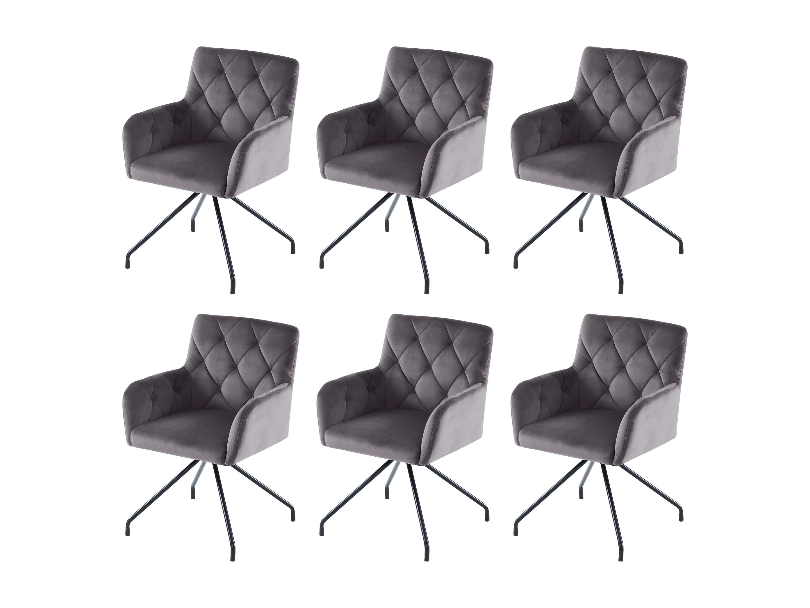 Zestaw 6 krzeseł do jadalni z aksamitu - 85 x 49 x 49 cm - tapicerowany fotel z 4 metalowymi nogami - z podparciem lędźwiowym - szary