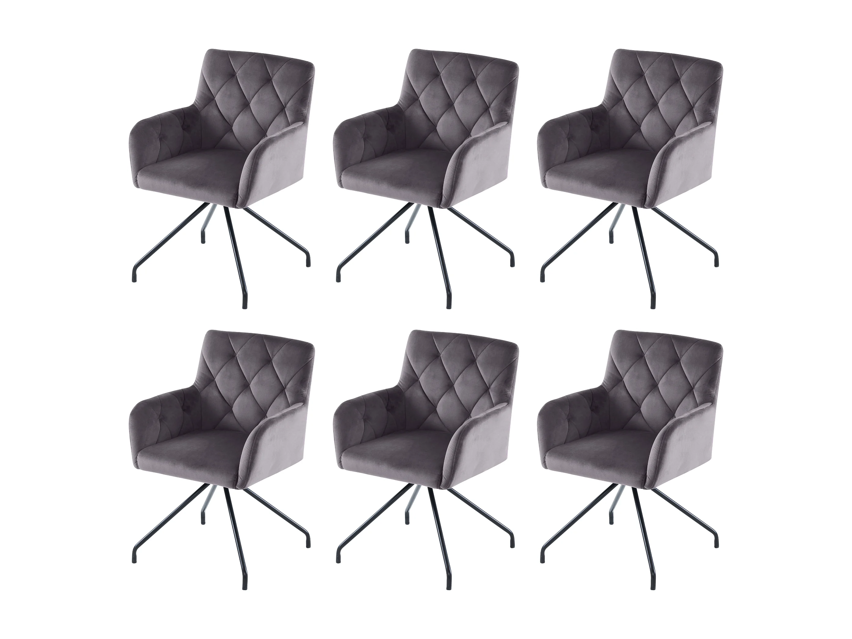Zestaw 6 krzeseł Velvet - 83 x 53 x 57 cm - Cztery srebrne metalowe nogi - z podłokietnikami i regulowanymi nóżkami - Szary