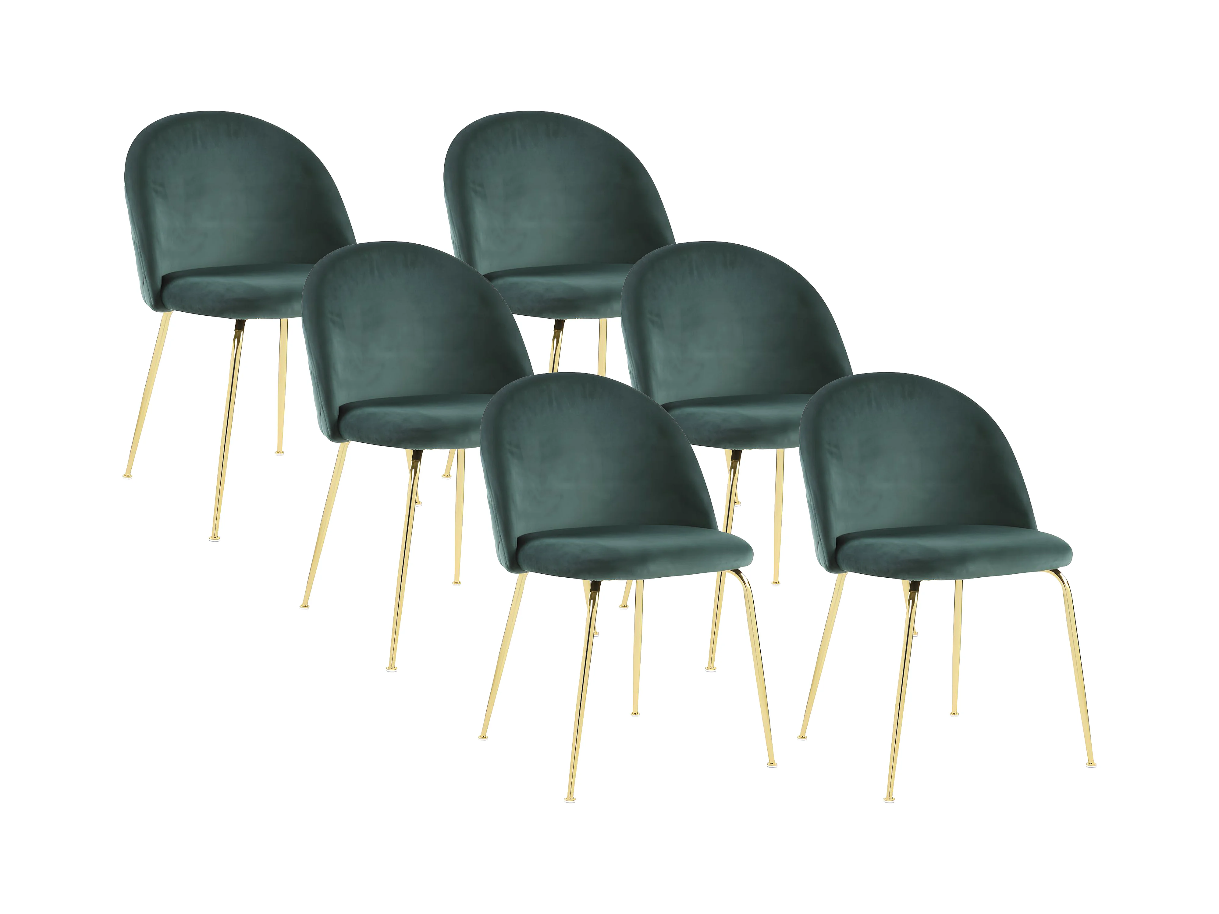 Zestaw 6 krzeseł MELBOURNE – welur i metal w kolorze złotym – kolor zielony
