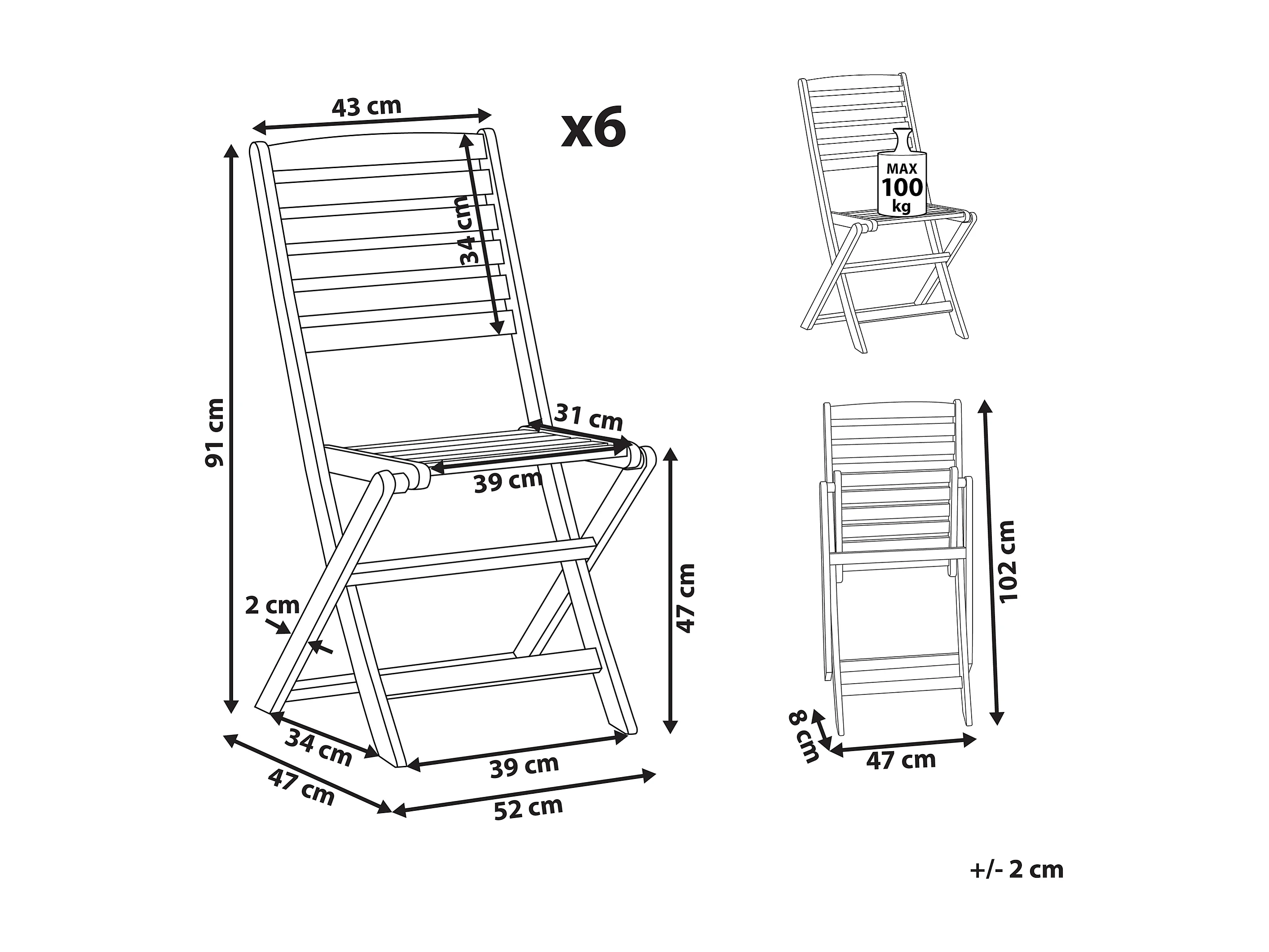 Zestaw 6 krzeseł ogrodowych FORNELLI Drewno akacjowe Brązowy