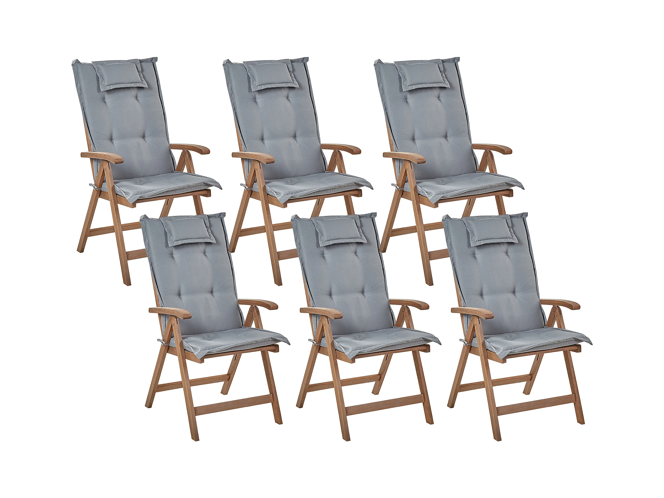 Zestaw 6 krzeseł ogrodowych z poduszkami AMANTEA Drewno akacjowe Szary