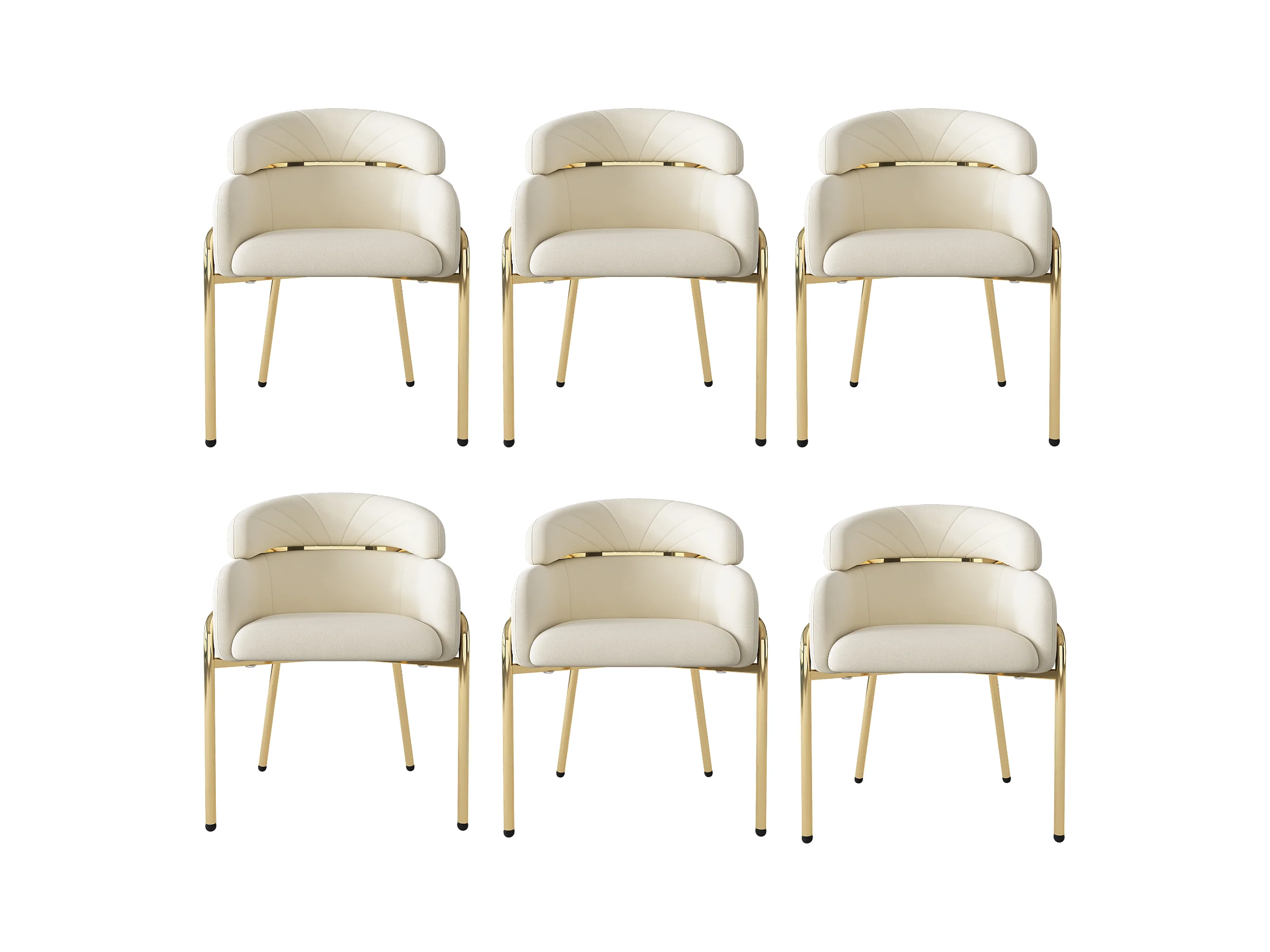 Zestaw 6 luksusowych krzeseł welurowych - 62,23 x 58,42 x 55,88 cm - z czterema złotymi metalowymi nogami - beżowy