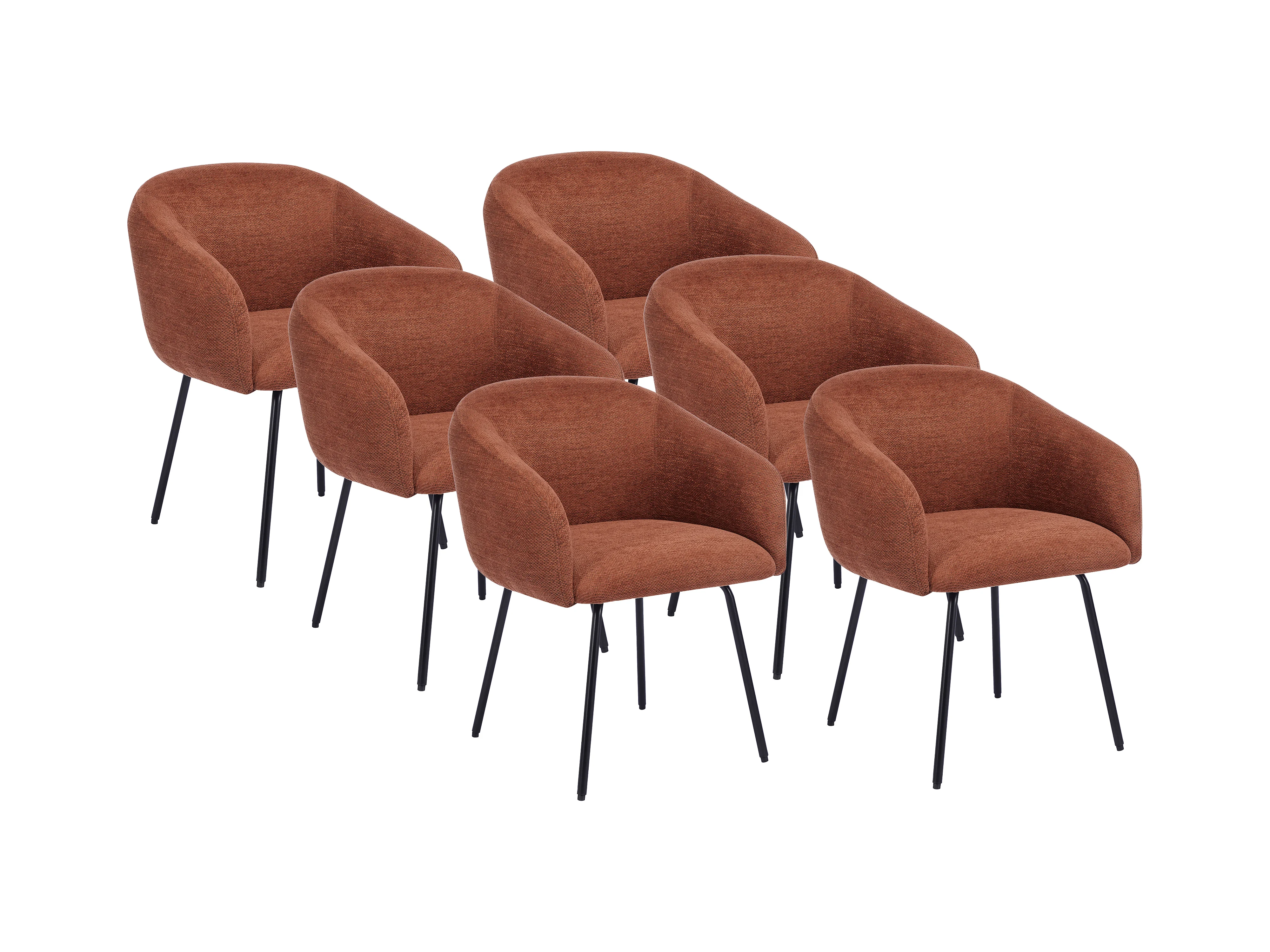 Zestaw 6 krzeseł z podłokietnikami z teksturowanej tkaniny i czarnego metalu - Terakota - NISTOSIA