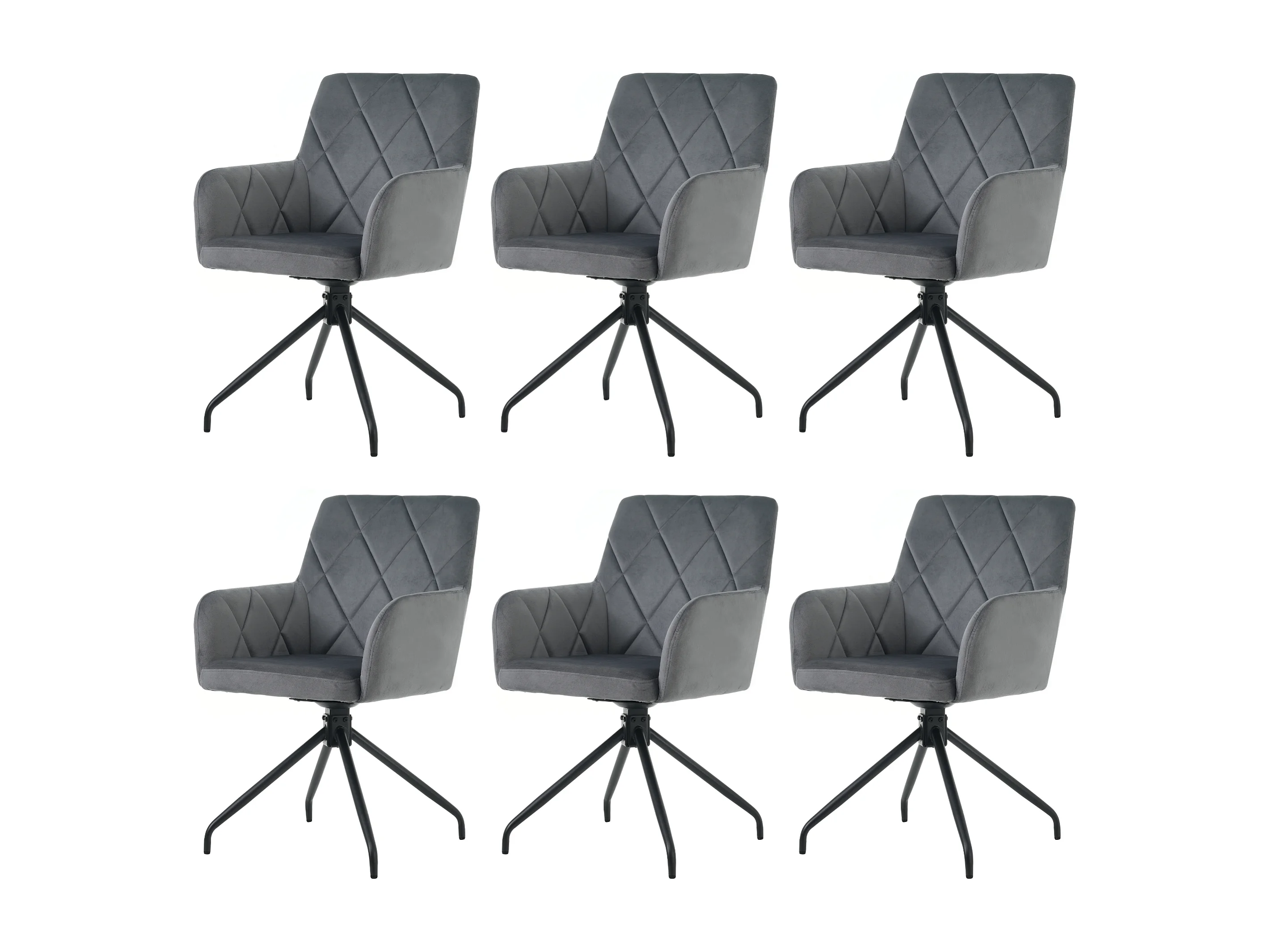 Zestaw 6 krzeseł Velvet - 83 x 53 x 57 cm - Cztery srebrne metalowe nogi - z podłokietnikami i regulowanymi nóżkami - Szary