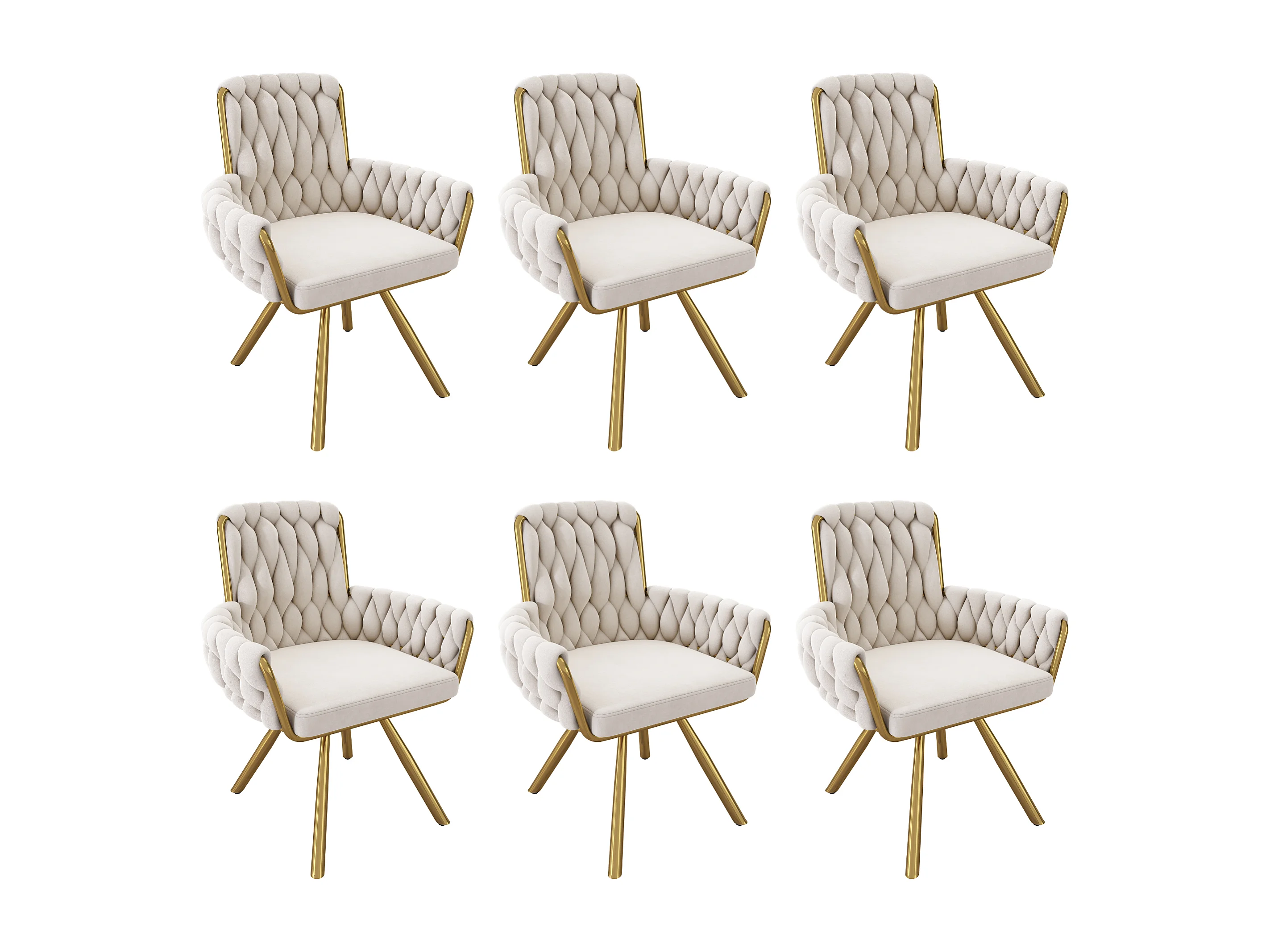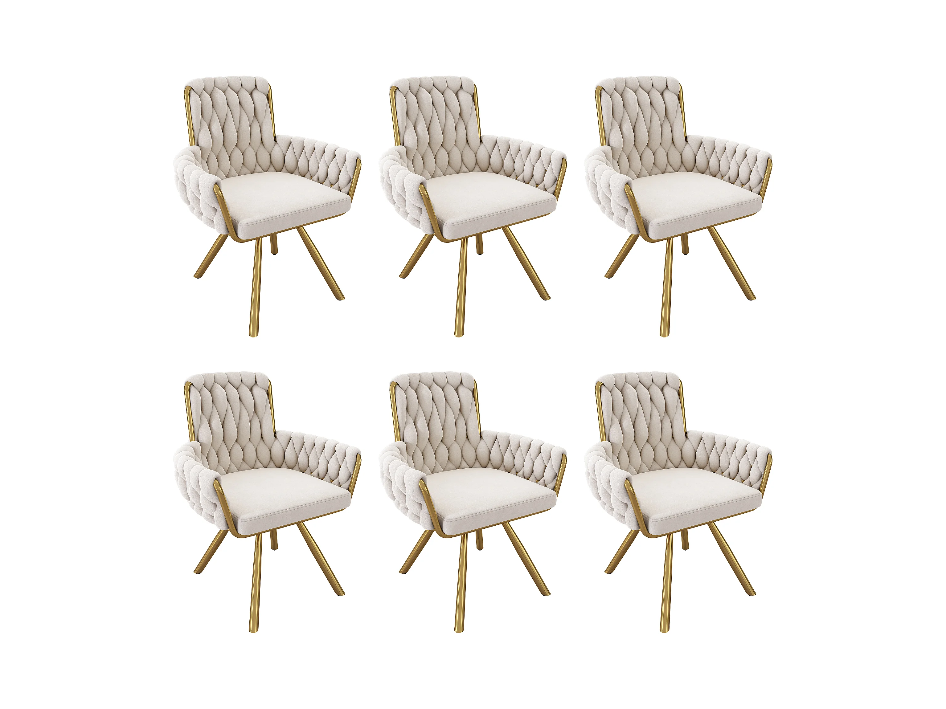 Zestaw 6 obrotowych krzeseł welurowych - 87 x 50 x 55 cm - Fotel z czterema metalowymi nogami - Beżowy