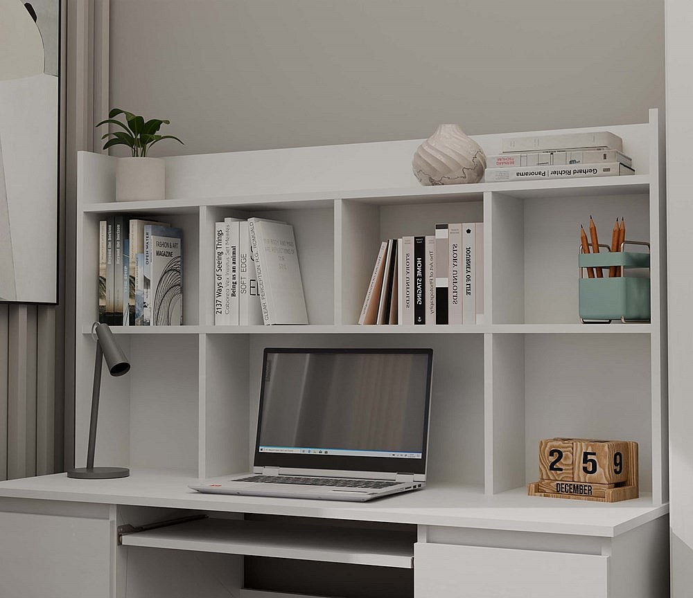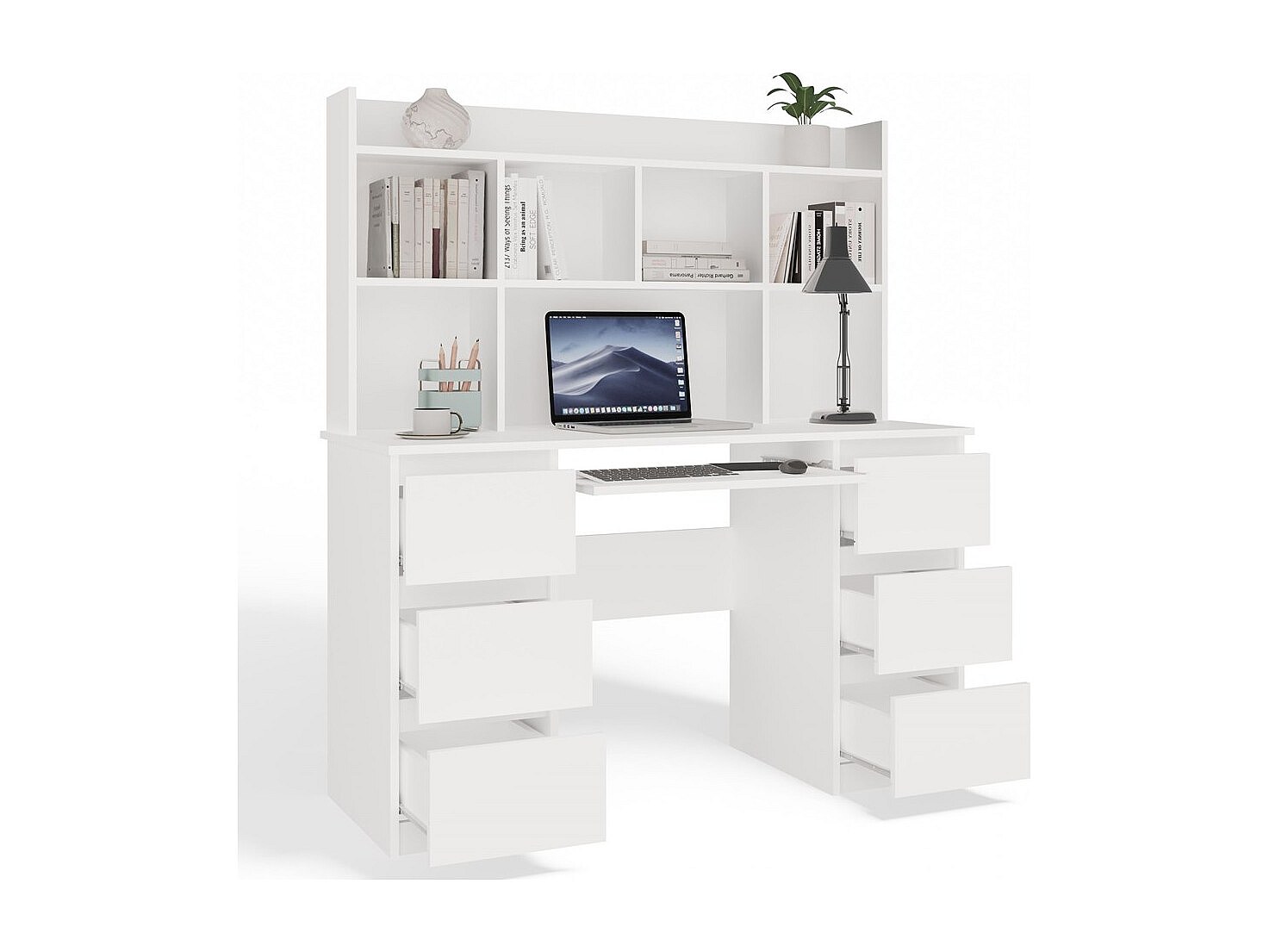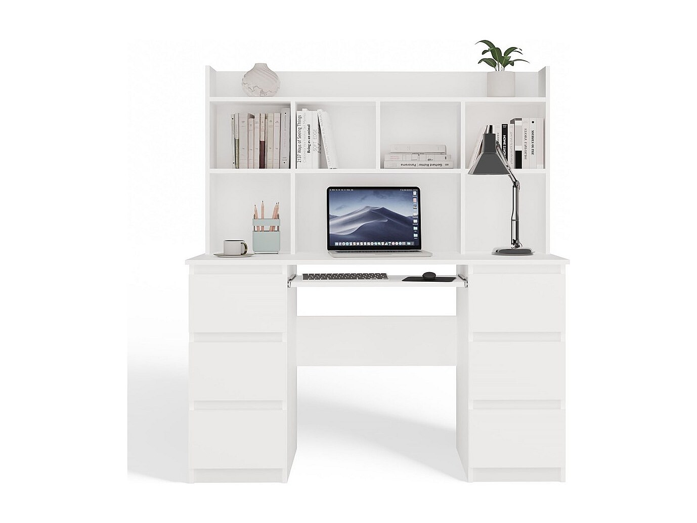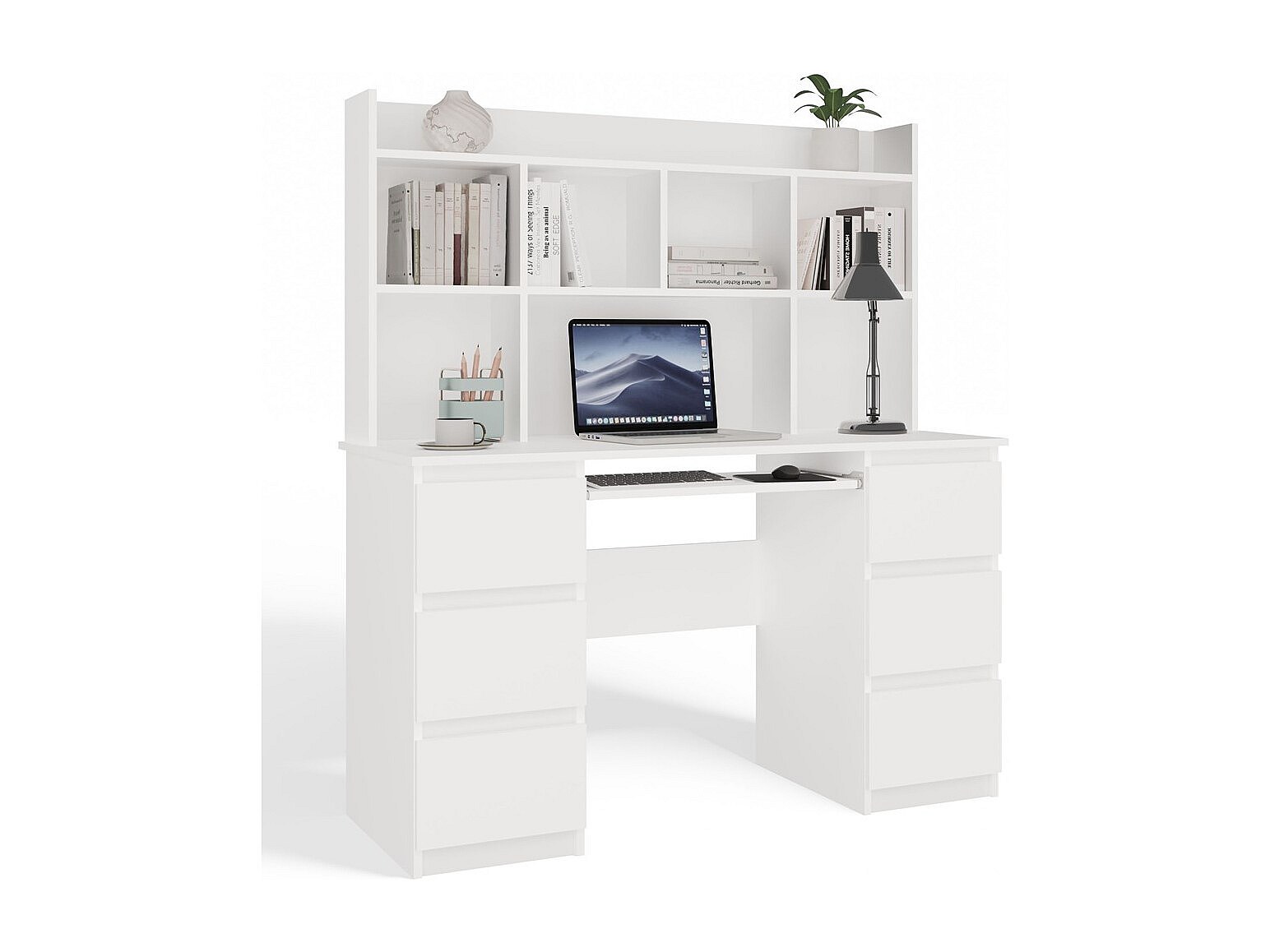 Zestaw Biurko KUBA+ Nadstawka | Białe | 130x51x146 cm | Do pracy, Nauki
