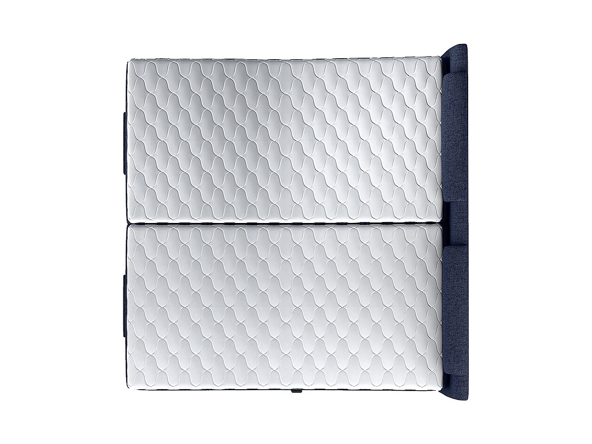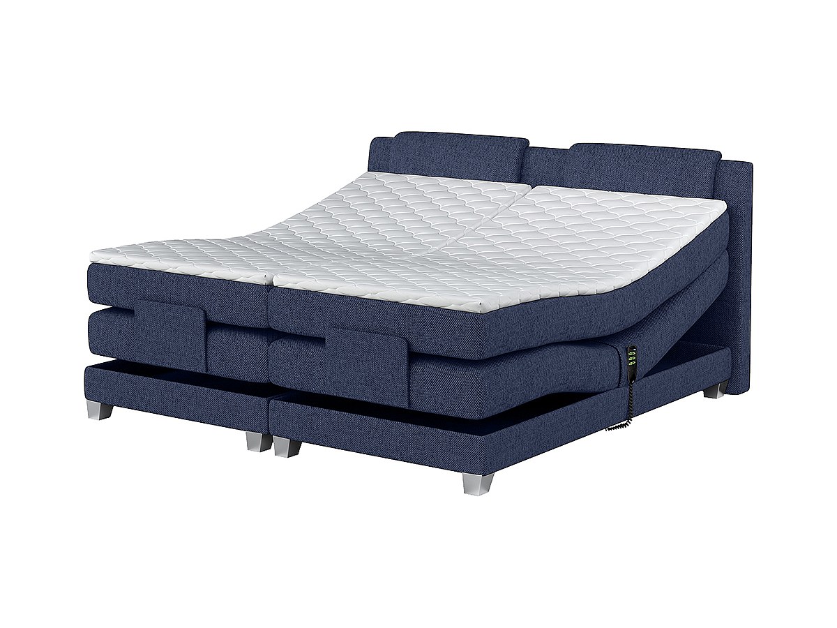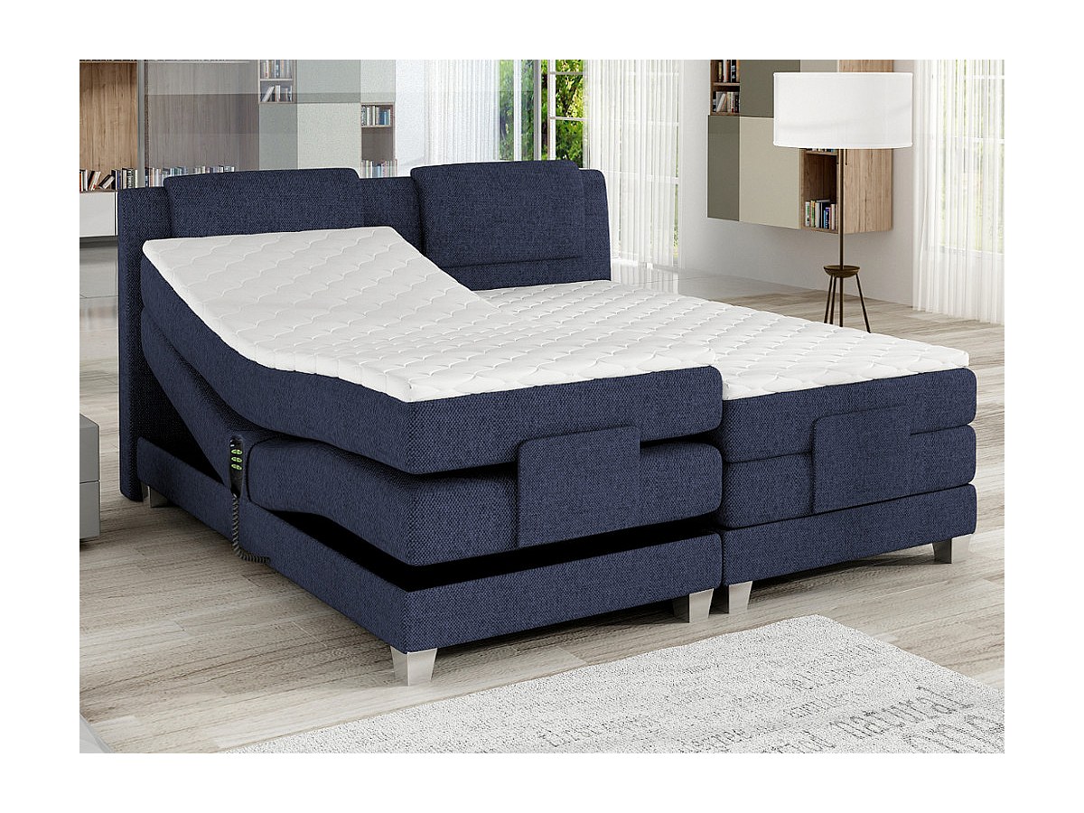Łóżko kontynentalne zagłówek ze stelażem z elektryczną funkcją relaksu, materacem i materacem nawierzchniowym CASTEL marki PALACIO – 2 × 90 × 200 cm – tkanina w kolorze denim