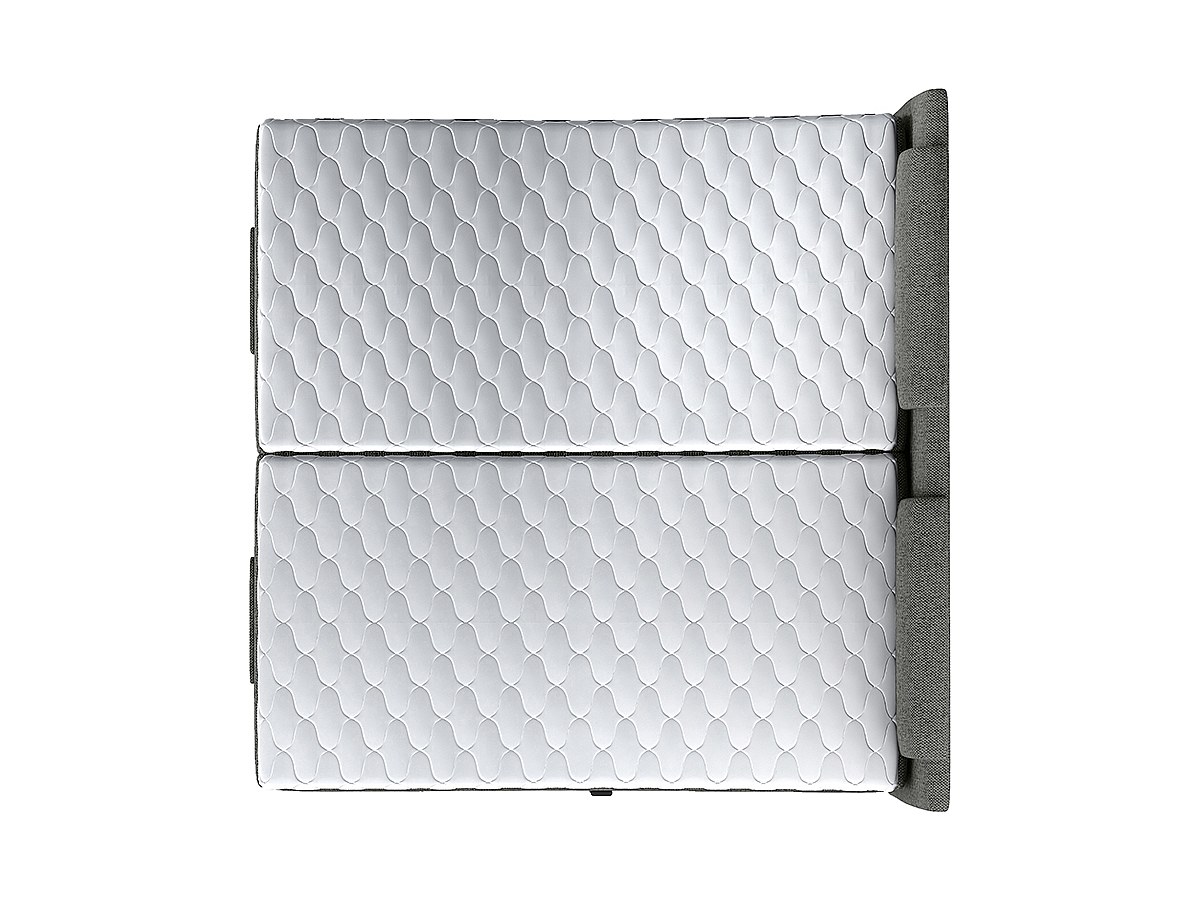 Łóżko kontynentalne CASTEL z tkaniny oferuje kompletne, estetyczne i najwyższej klasy rozwiązanie: stylowe stelaże z elektrycznymi sprężynami: regulacja na wysokości głowy i stóp zapewnia większy komfort i praktyczność (w komplecie 8 nóg), dekoracyjny materac ze sprężynami kieszeniowymi, piankowa nakładka na materac i dopasowane zagłowie!