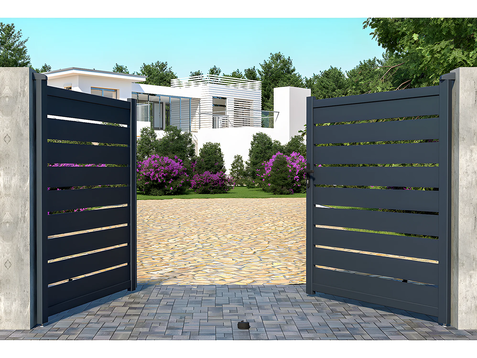 Elektryczna ażurowa aluminiowa brama skrzydłowa dł. 305 x wys. 183 cm antracyt PRIMO