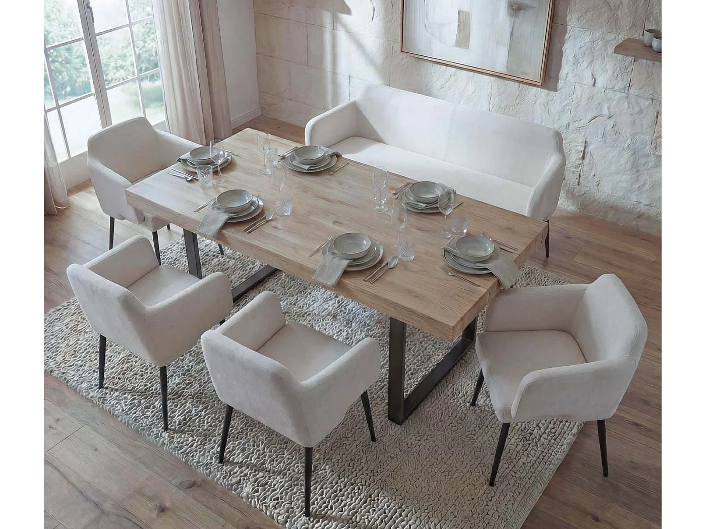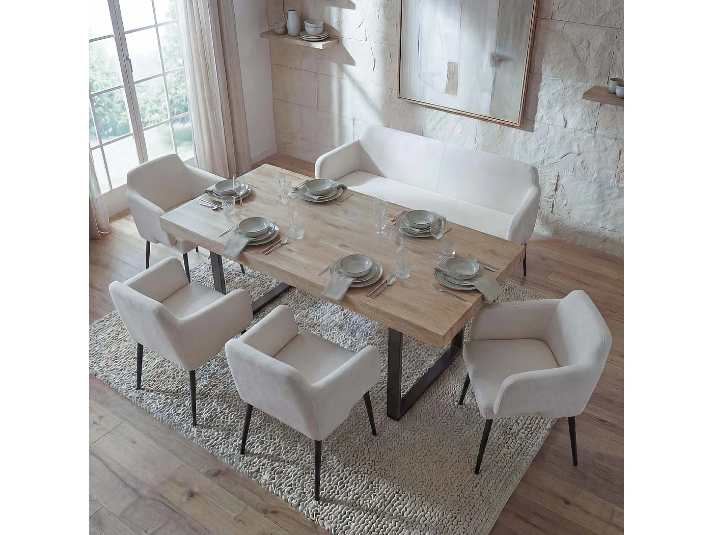 Zestaw do jadalni MCW-L13 (5 elementów), kremowo-biały