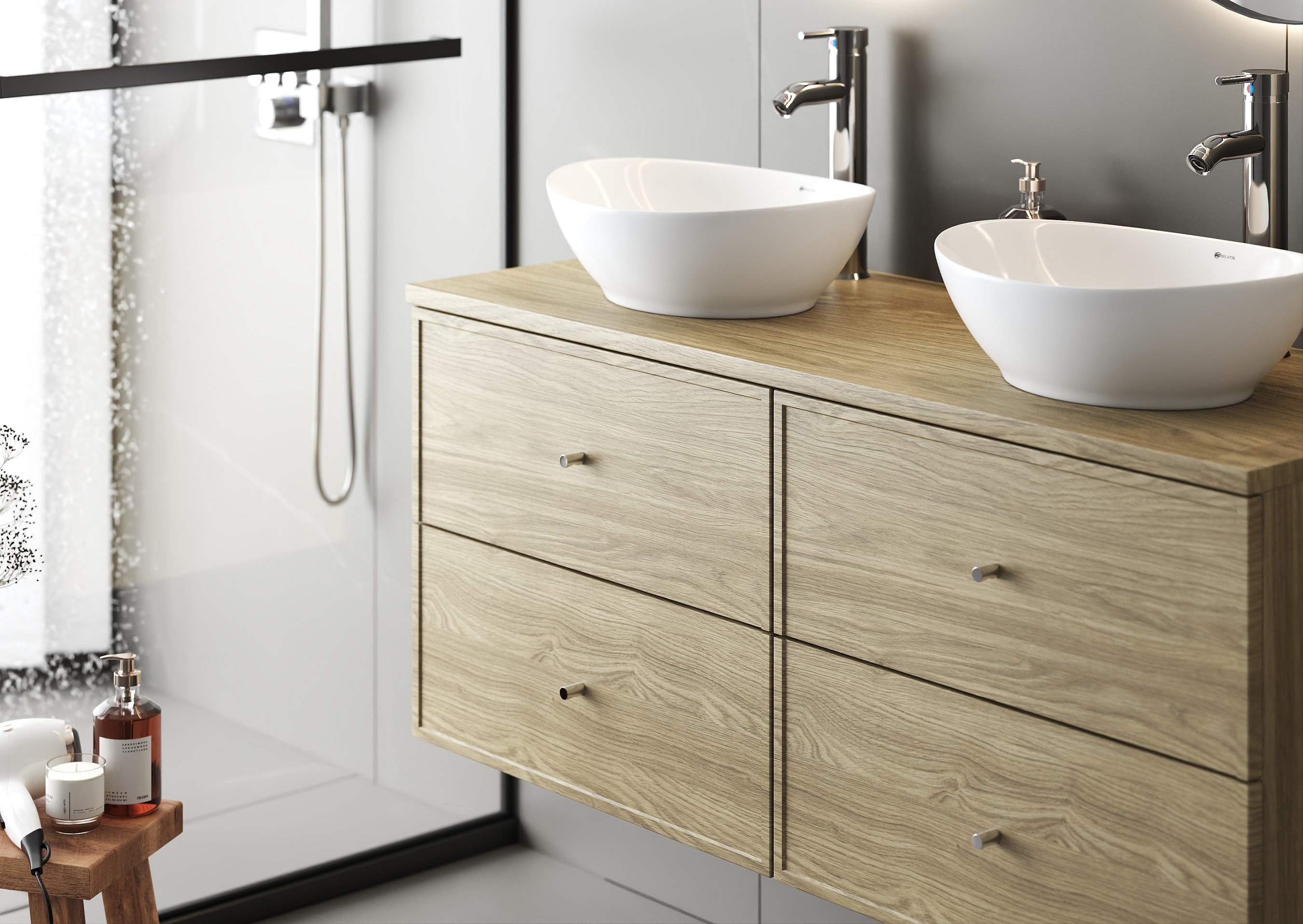 Zestaw do Łazienki 120cm Szafka Blat Umywalka Dąb Olejowany Pile