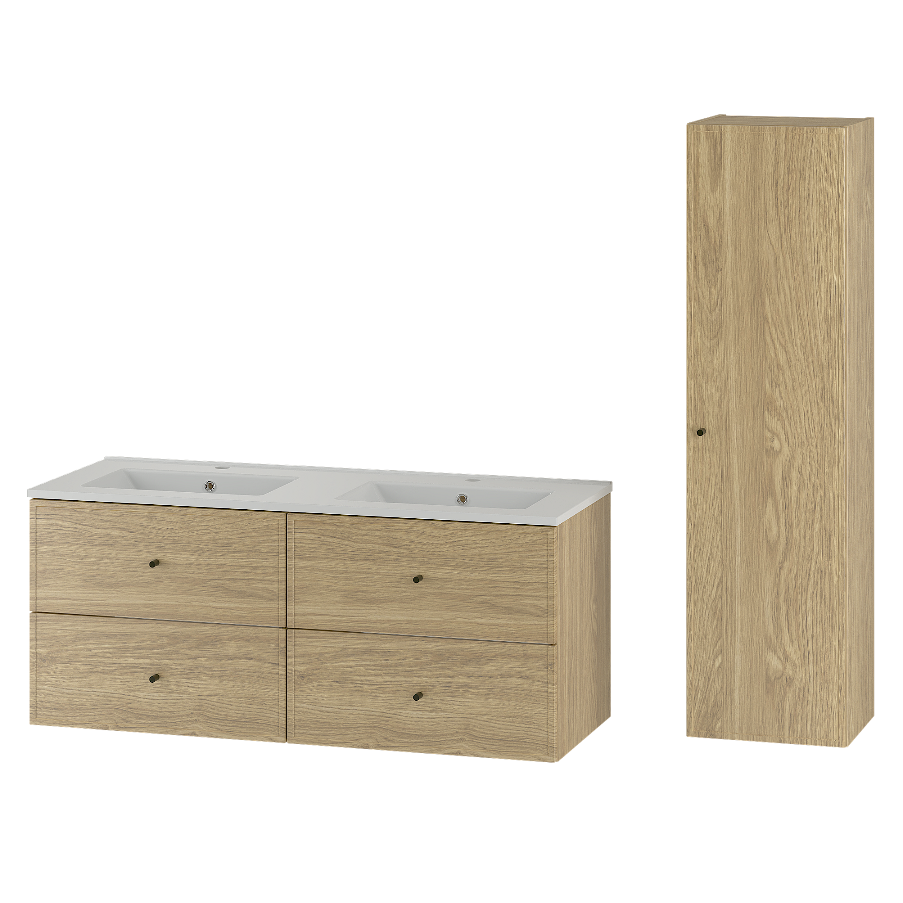 Zestaw do Łazienki 120cm Szafka z Umywalką Słupek Słupek Dąb Olejowany Marco