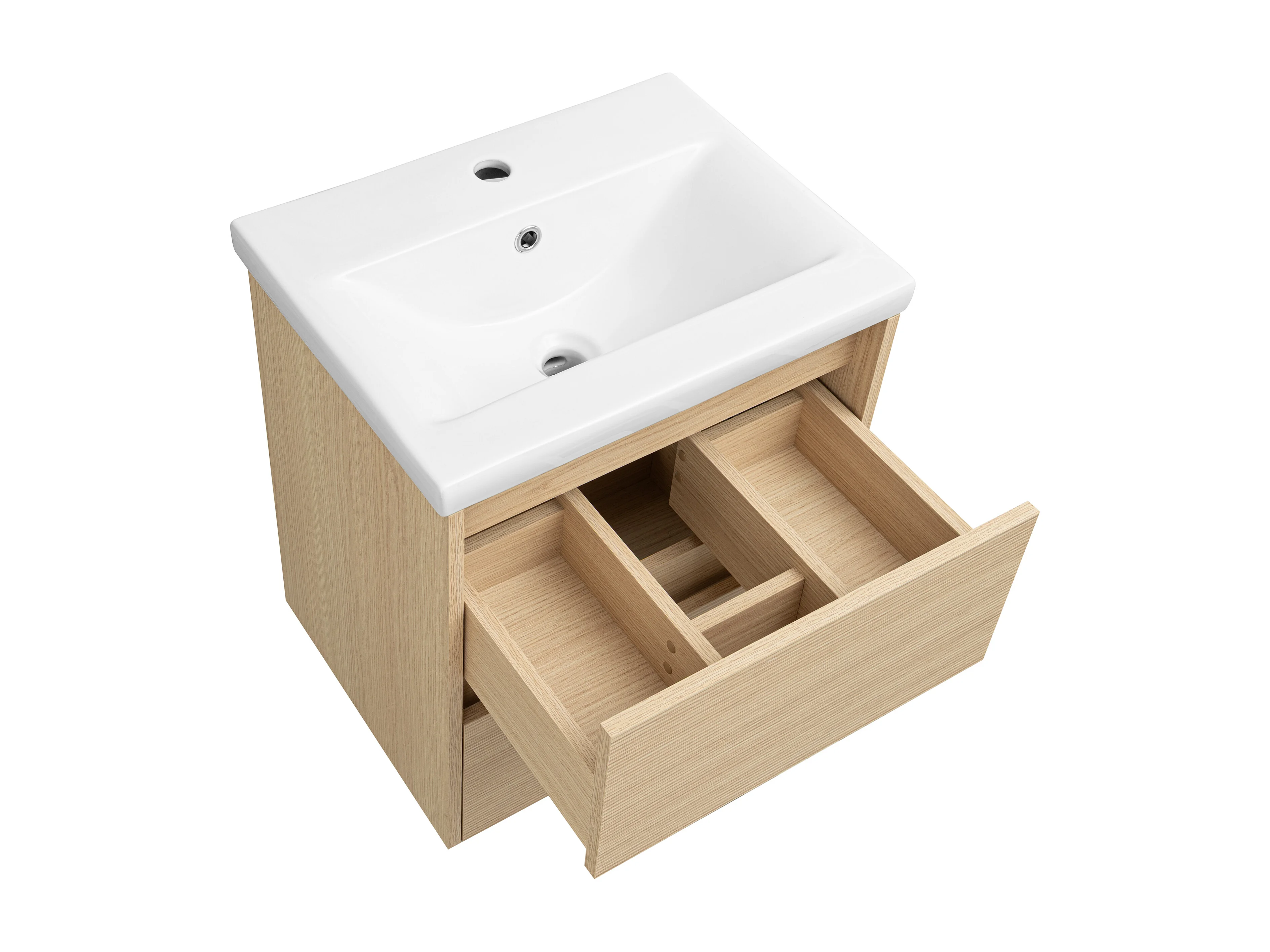 Zestaw do Łazienki 60cm Szafka z Blatem Umywalka Słupek Ryflowane Fronty Dąb Wotan Cleo