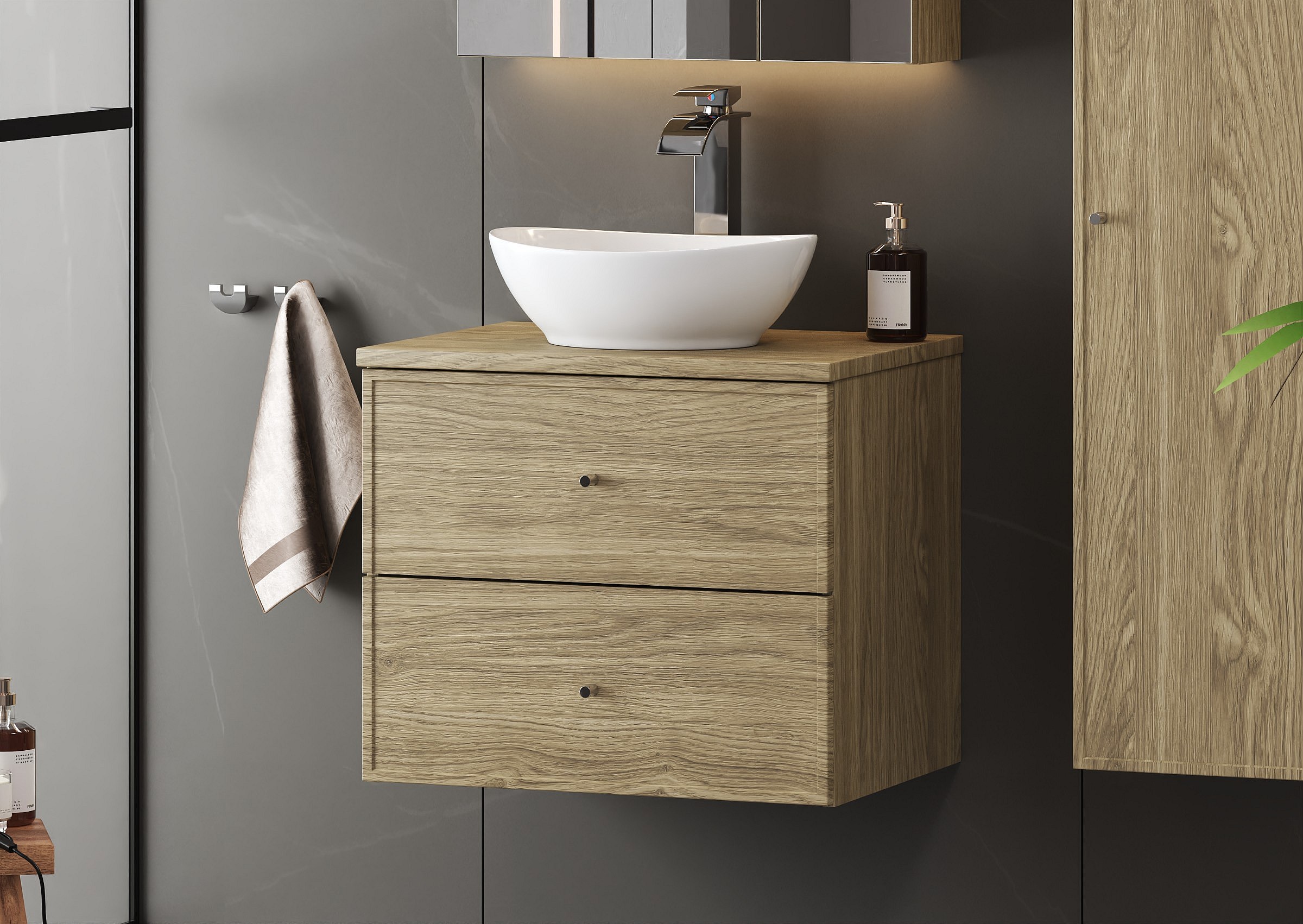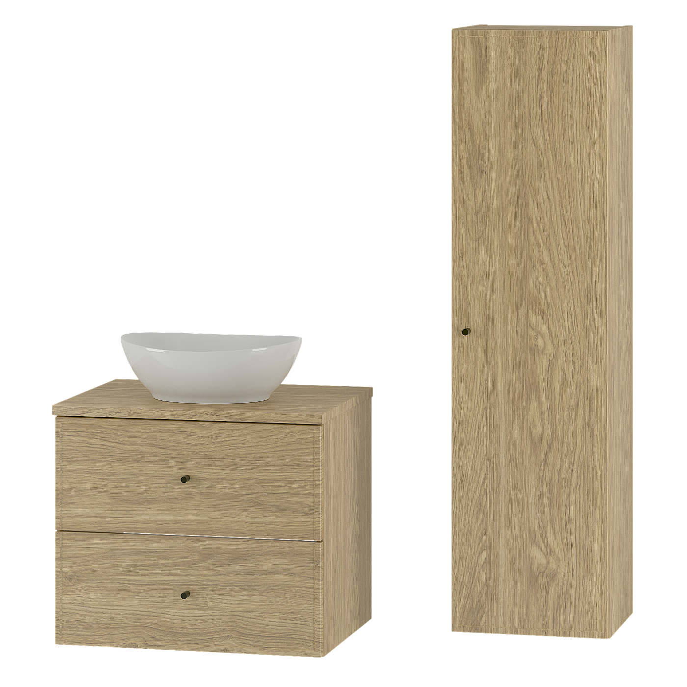 Zestaw do Łazienki 60cm Szafka z Blatem Umywalka Słupek Dąb Olejowany Marco