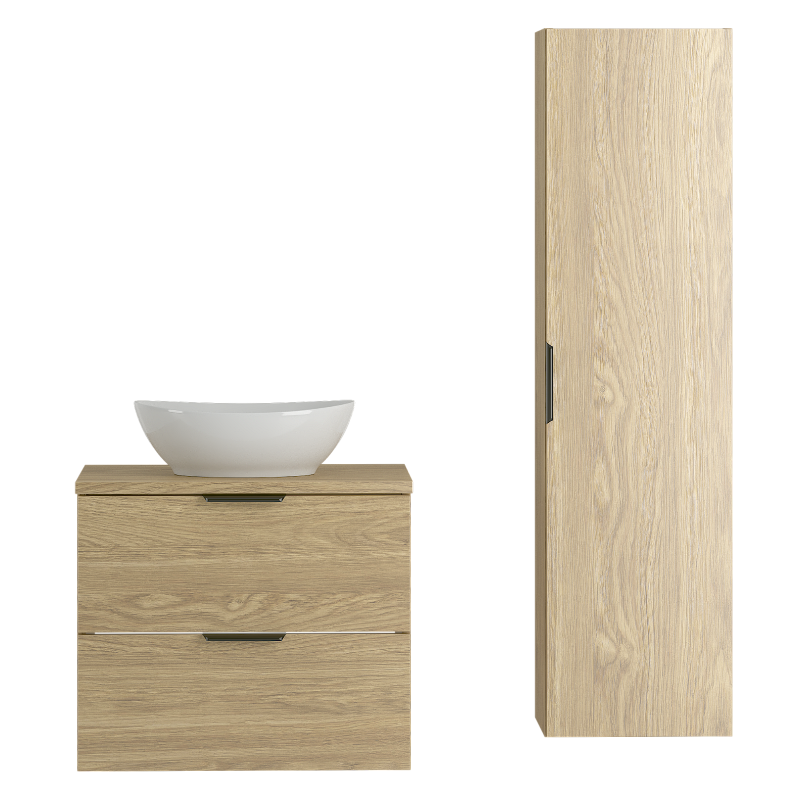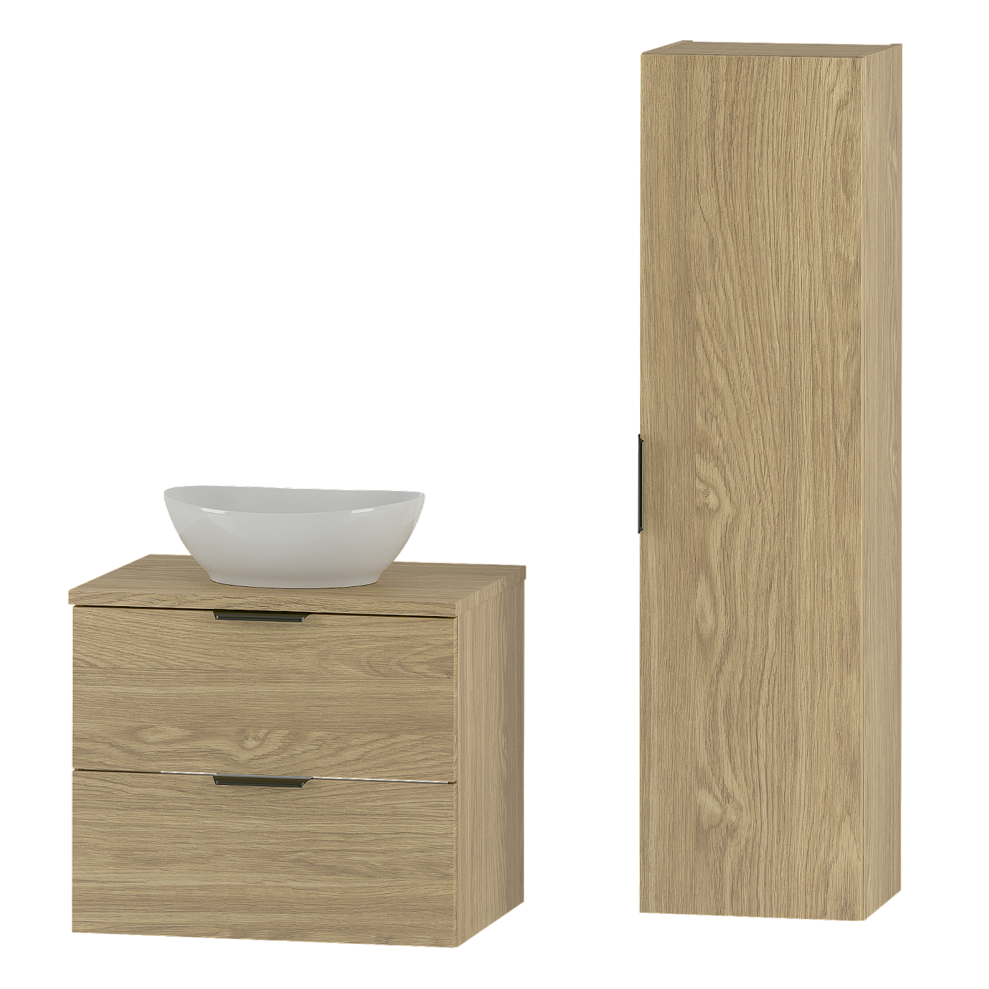 Zestaw do Łazienki 60cm Szafka z Umywalką Słupek Dąb Olejowany Etna