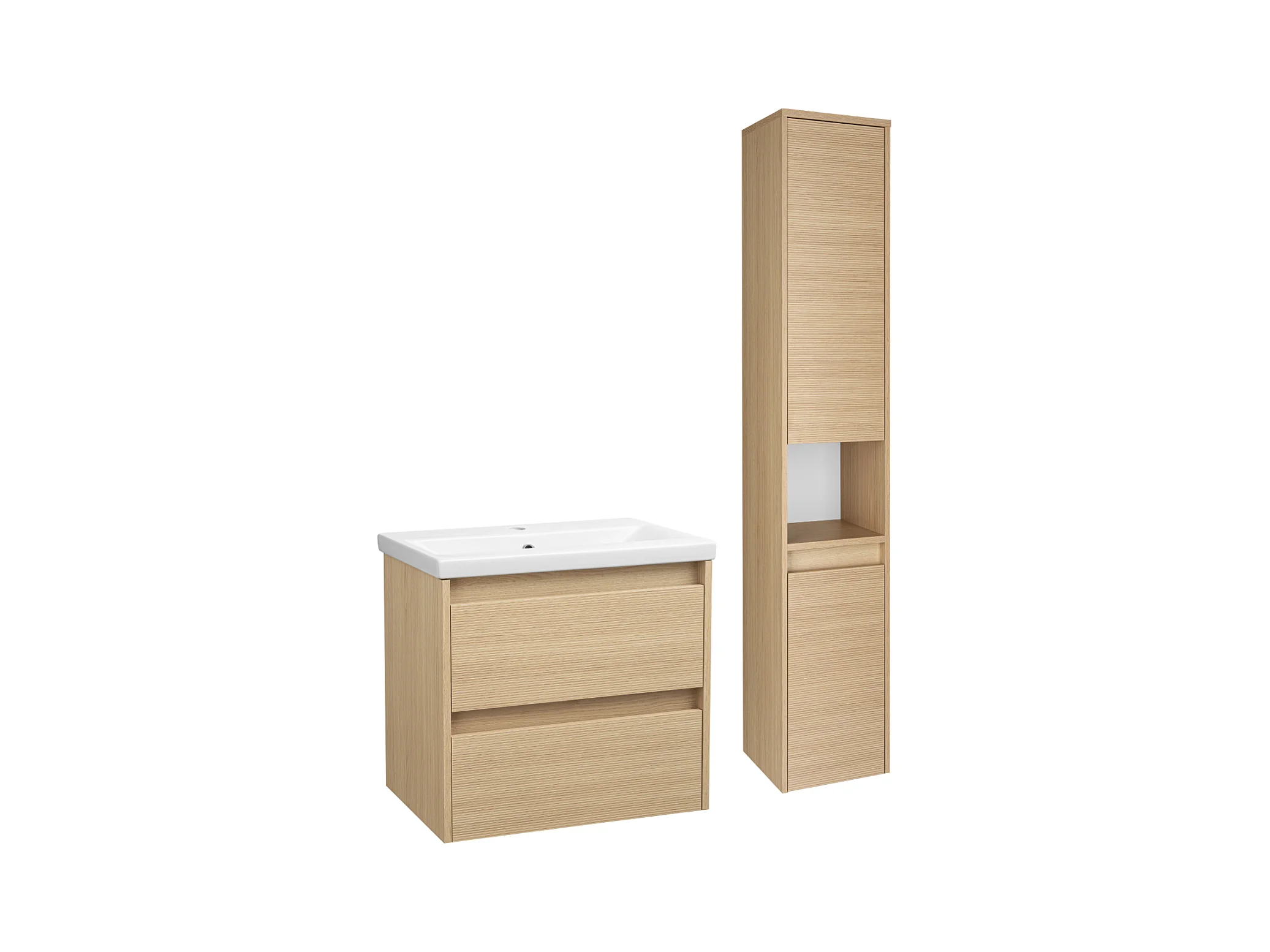 Zestaw do Łazienki 60cm Szafka z Umywalką Słupek Dąb Olejowany Marco