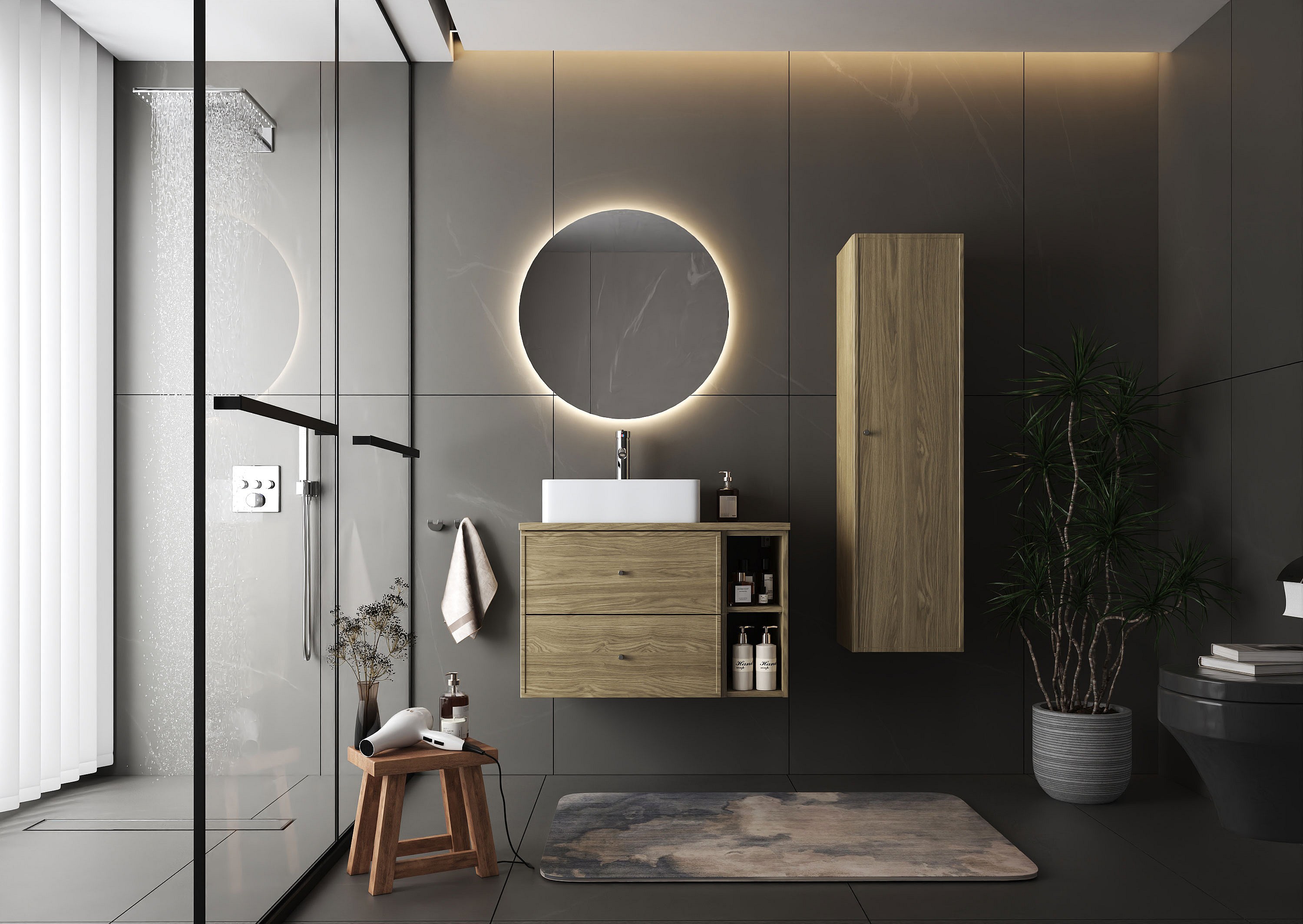 Zestaw do Łazienki 80cm Szafka z Blatem Dąb Olejowany Marco