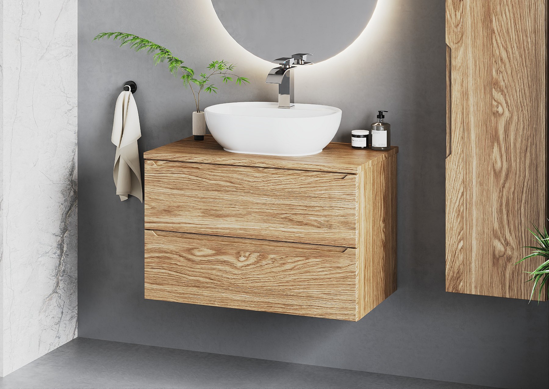 Zestaw do Łazienki 80cm Szafka z Blatem Dąb Olejowany Marco