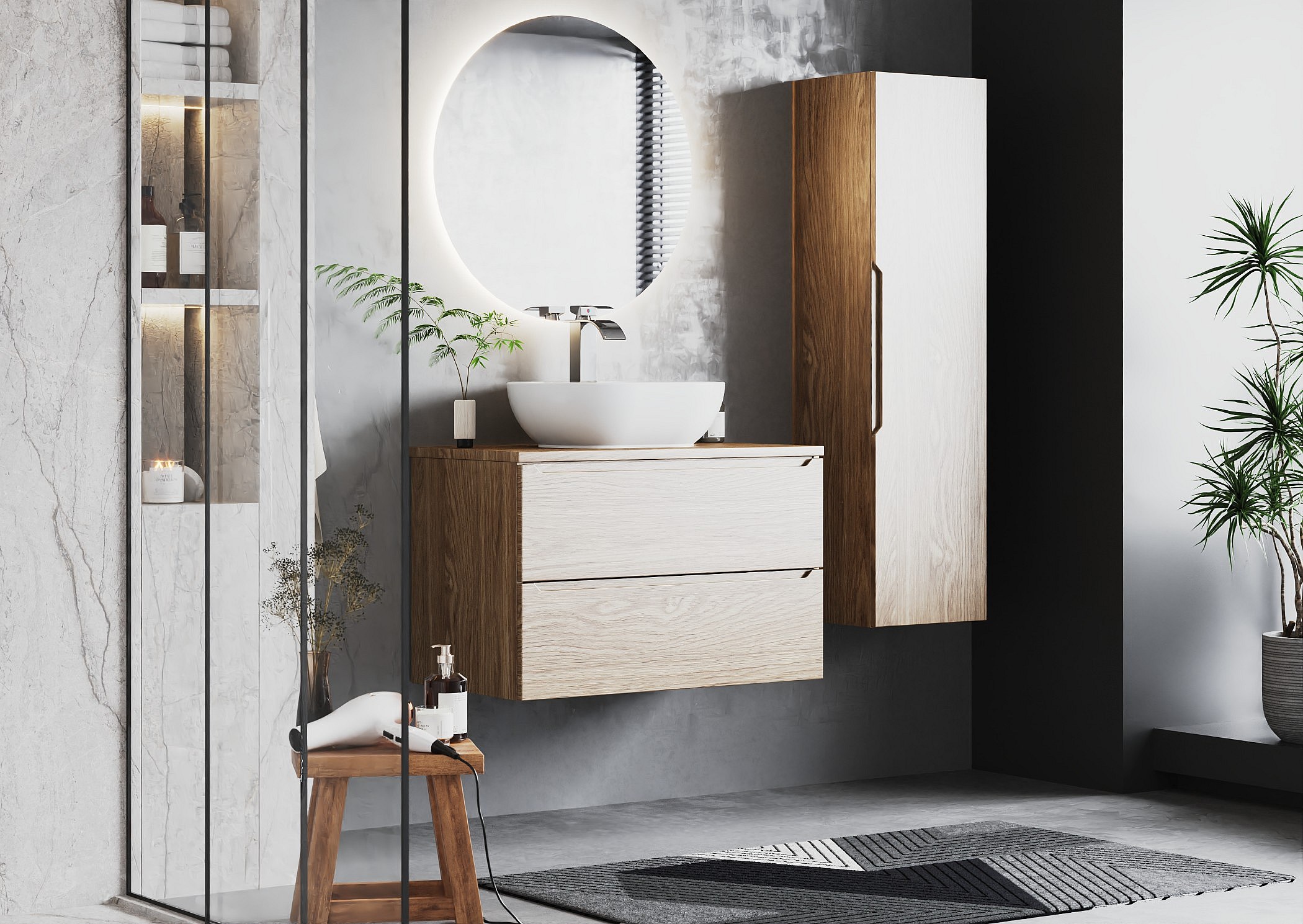 Zestaw do Łazienki 80cm Szafka z Blatem Dąb Olejowany Etna