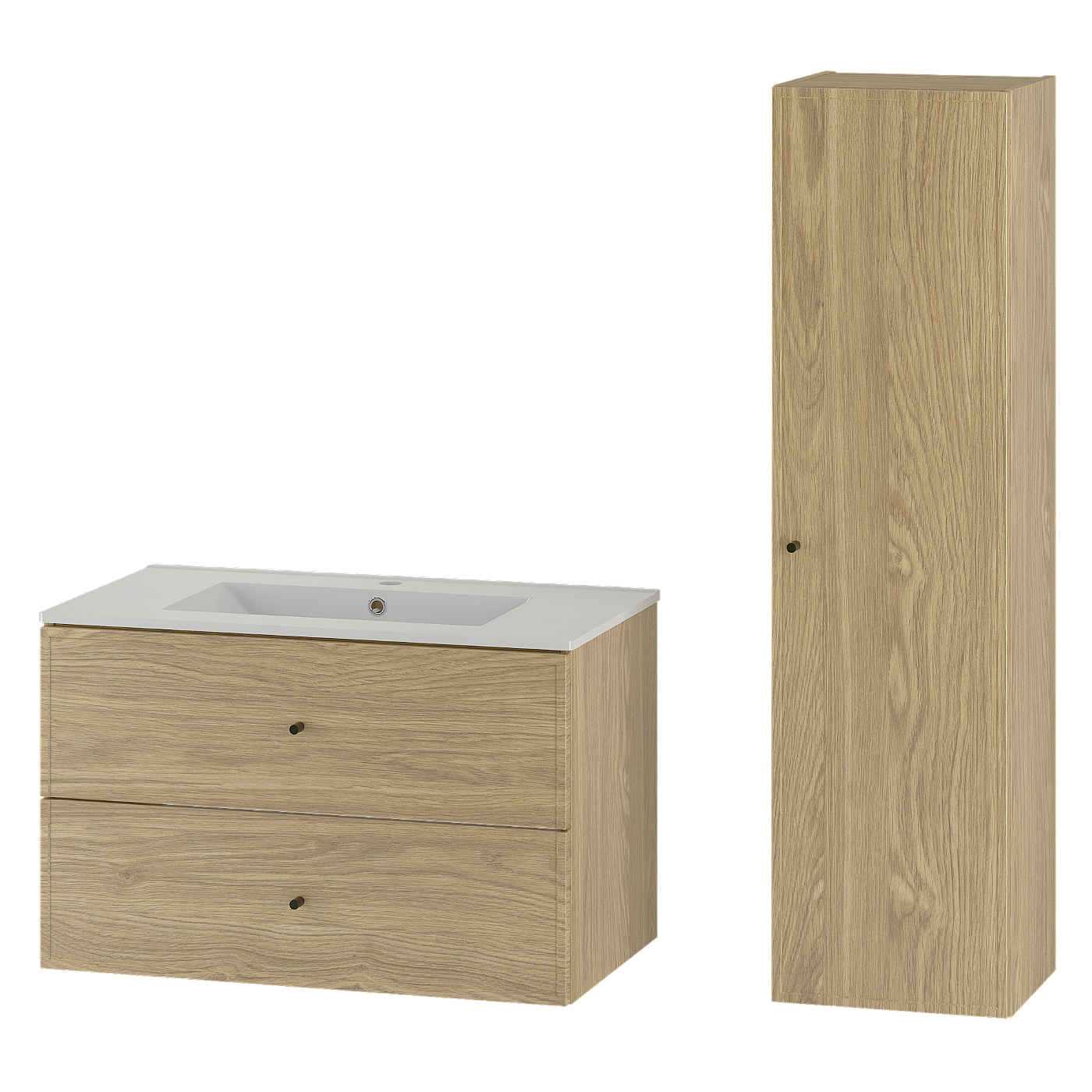 Zestaw do Łazienki 80cm Szafka z Umywalką Słupek Dąb Olejowany Etna