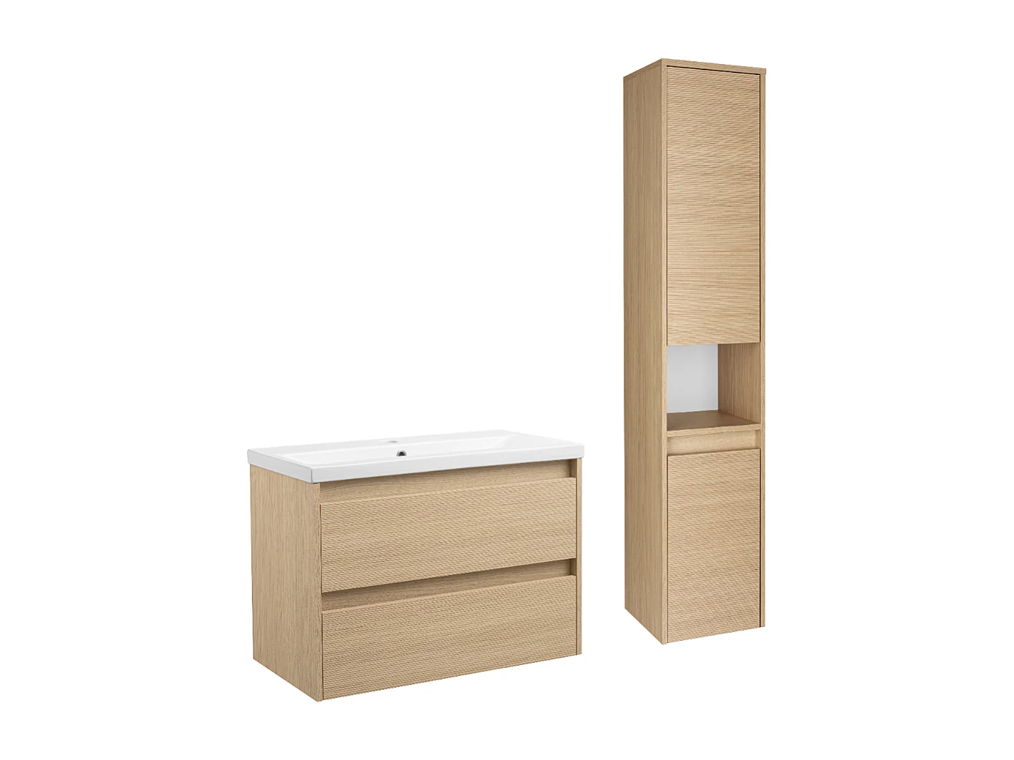 Zestaw do Łazienki 80cm Szafka z Umywalką Słupek Dąb Olejowany Pile