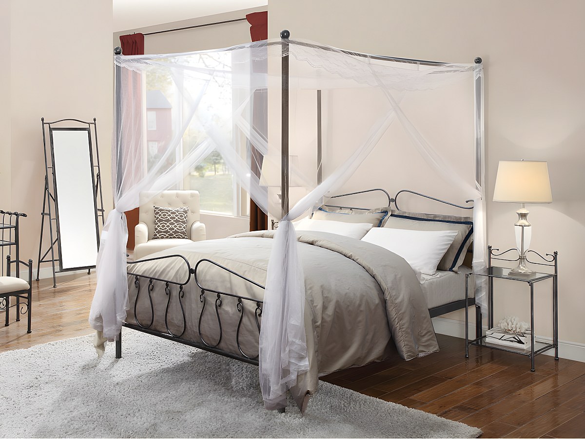 Zestaw do SYPIALNI MARQUISE - łóżko z baldachimem 180 × 200 cm i 2 stoliki nocne - metal o wyglądzie kutego żelaza.