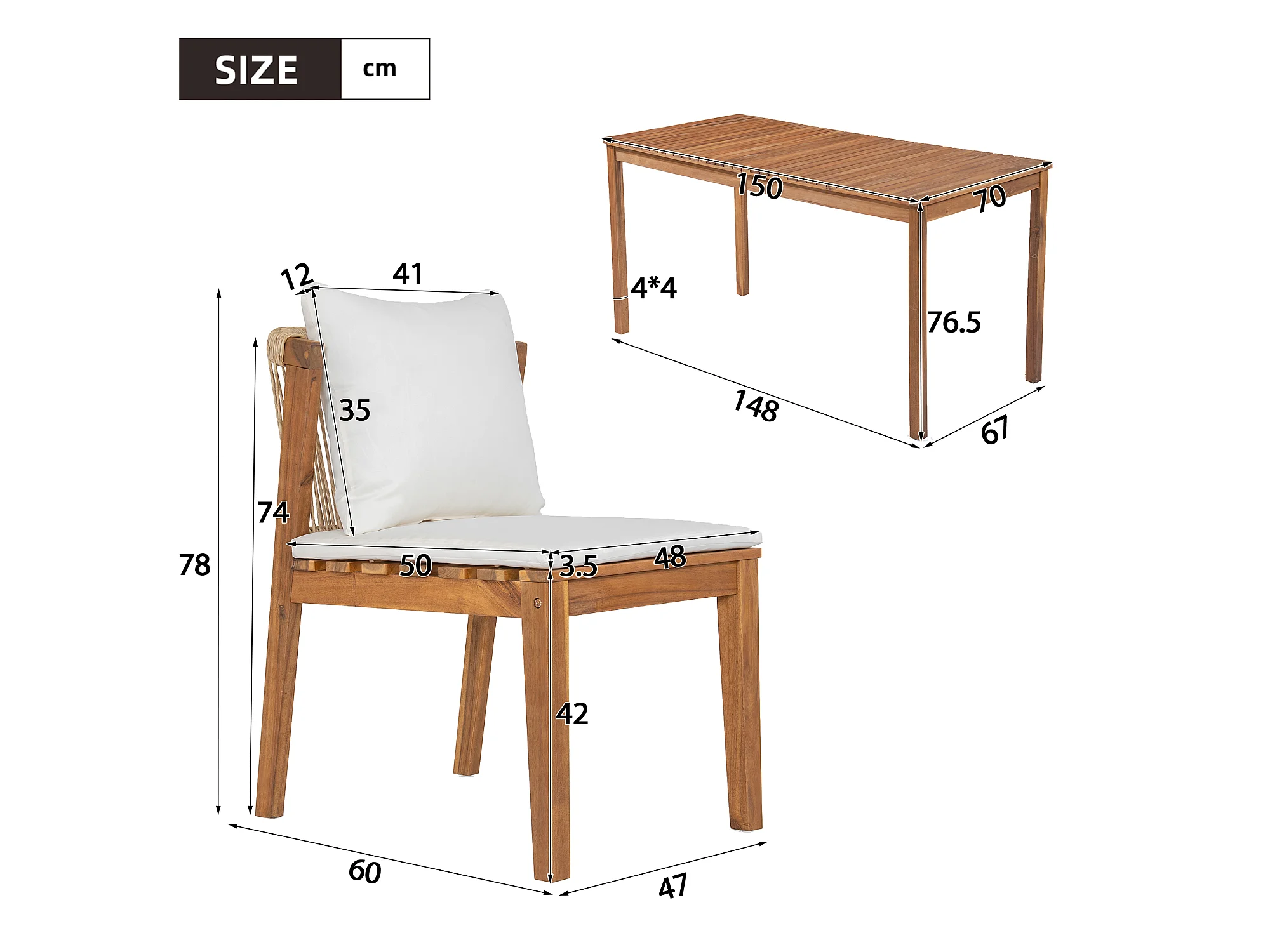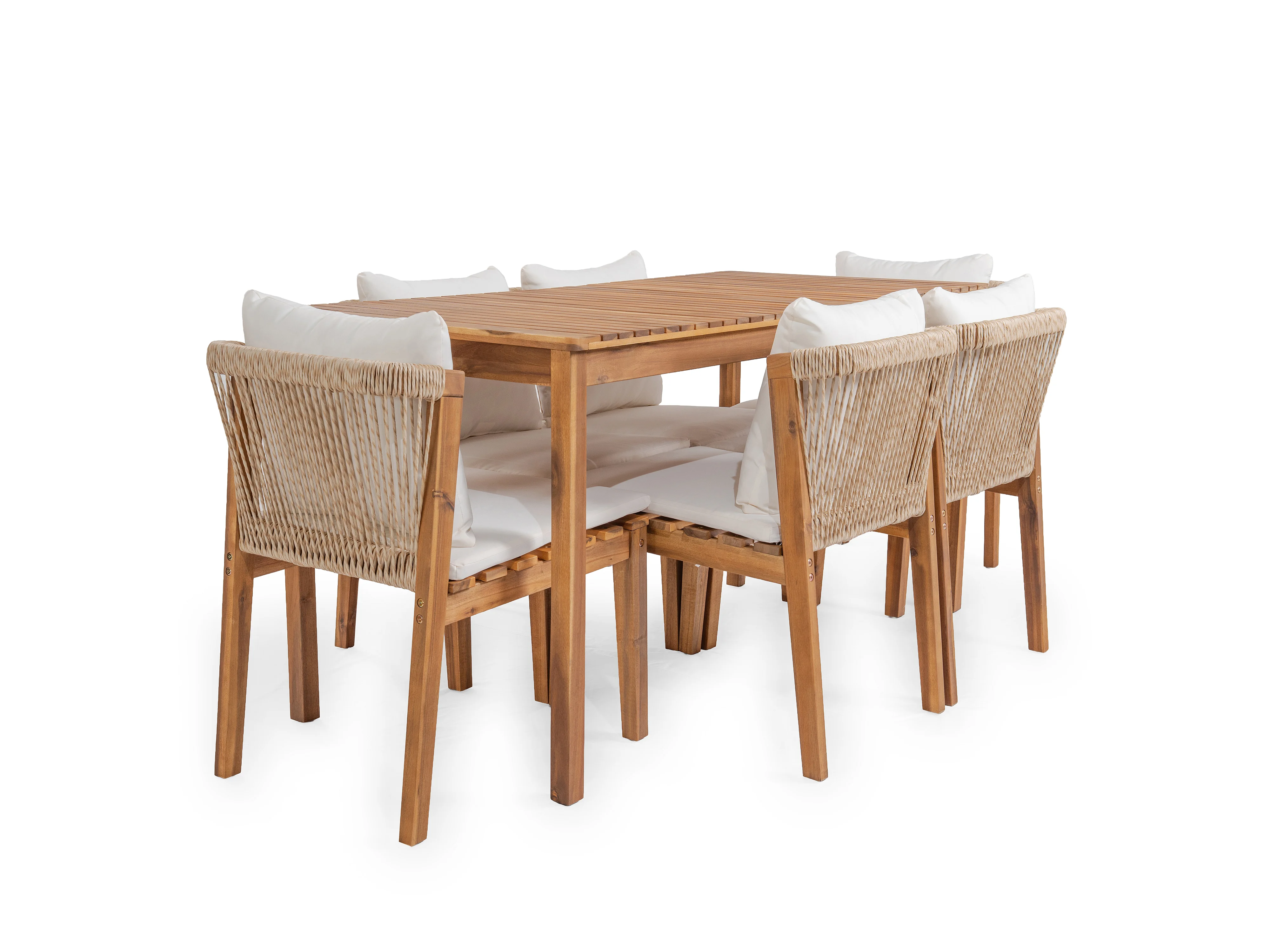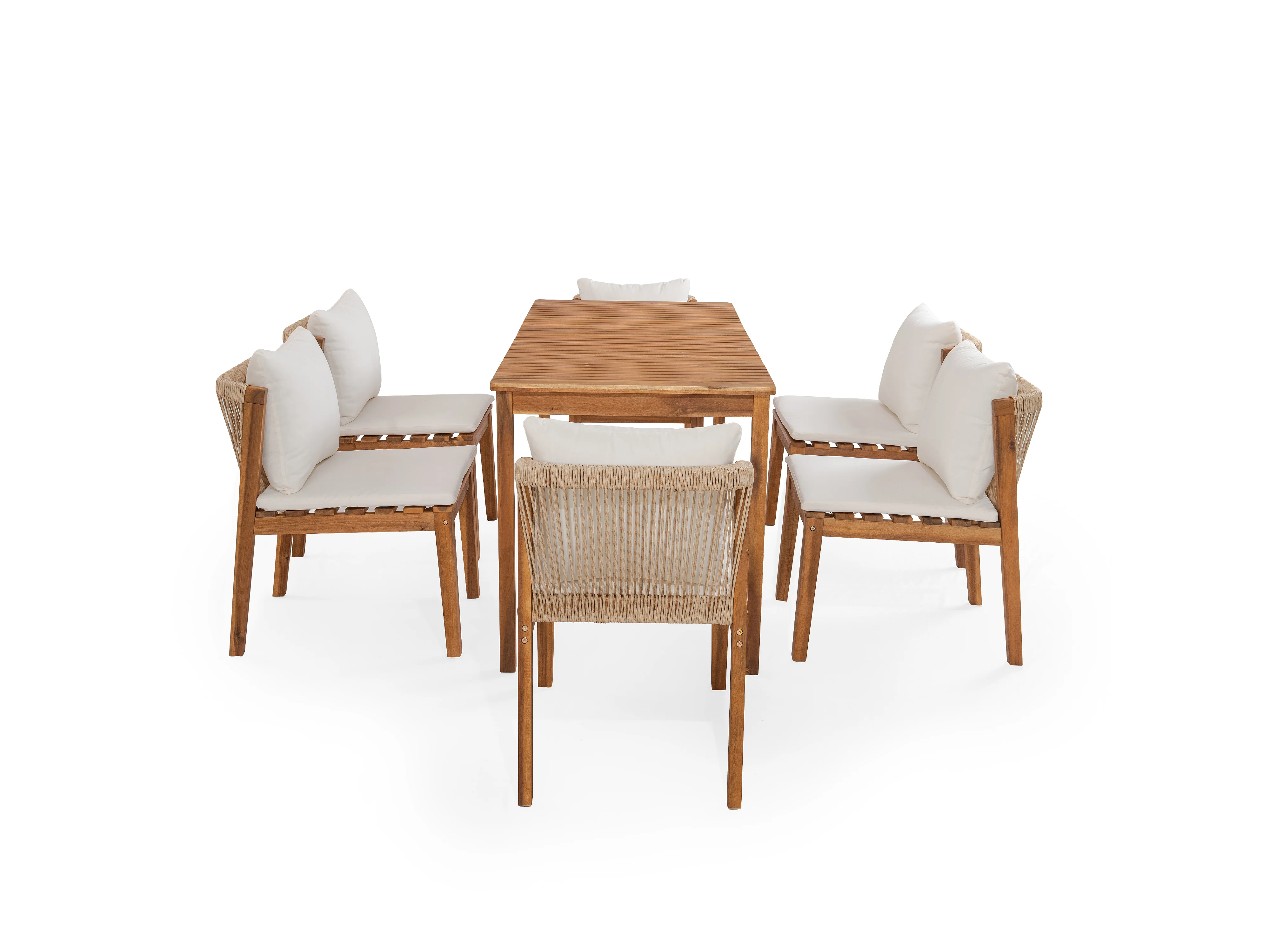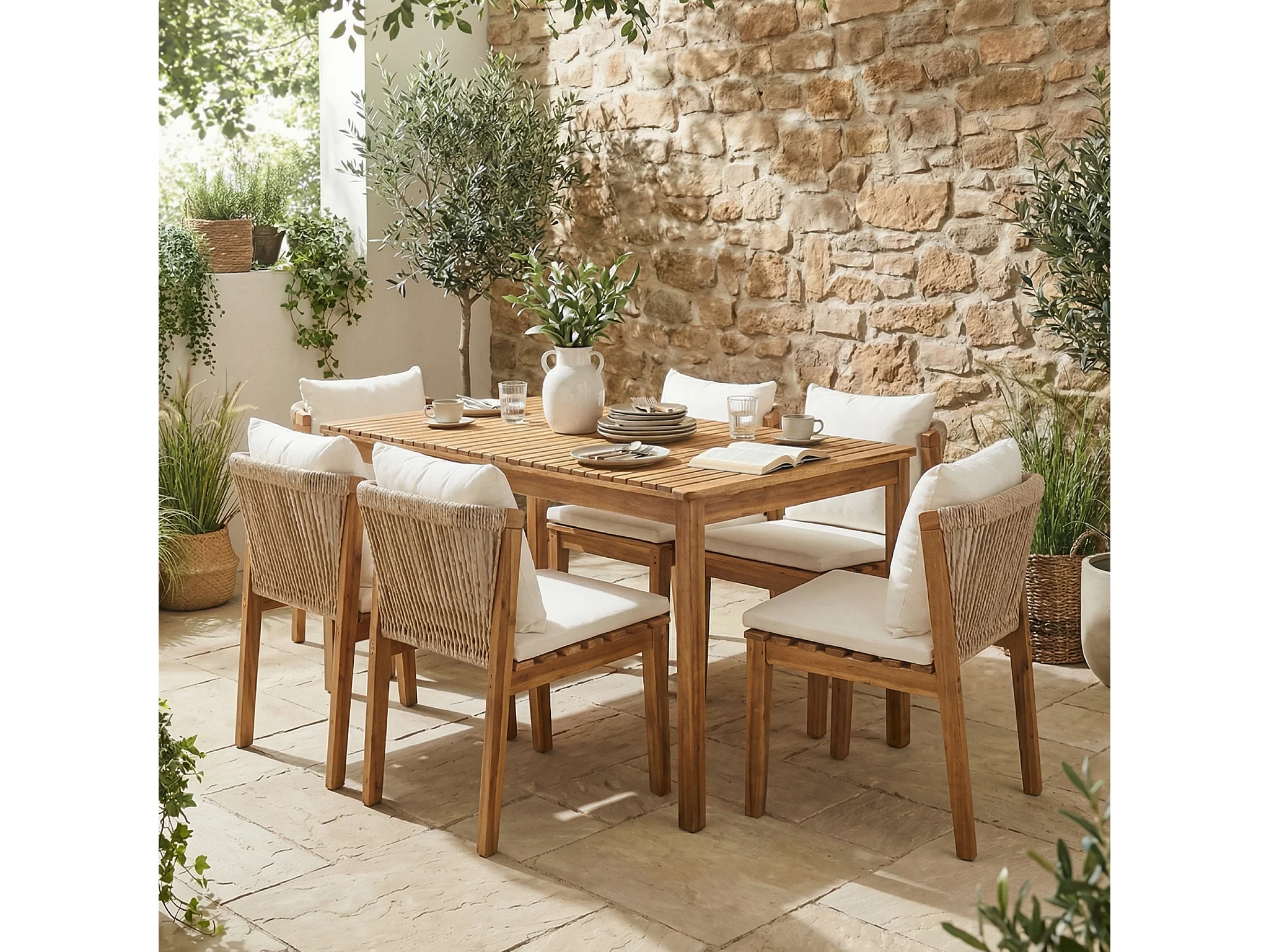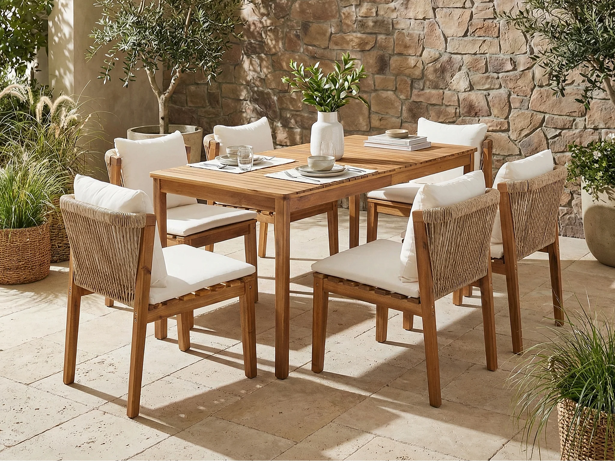 Zestaw jadalniany do ogrodu dla 6 osób - 1 stół i 6 krzeseł - Blat i rama z litego drewna - Khaki i beżowy