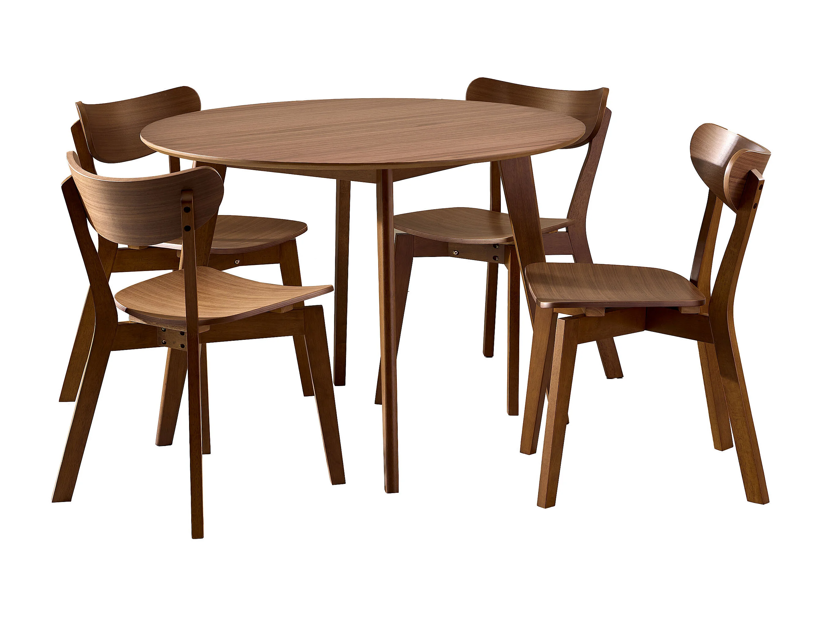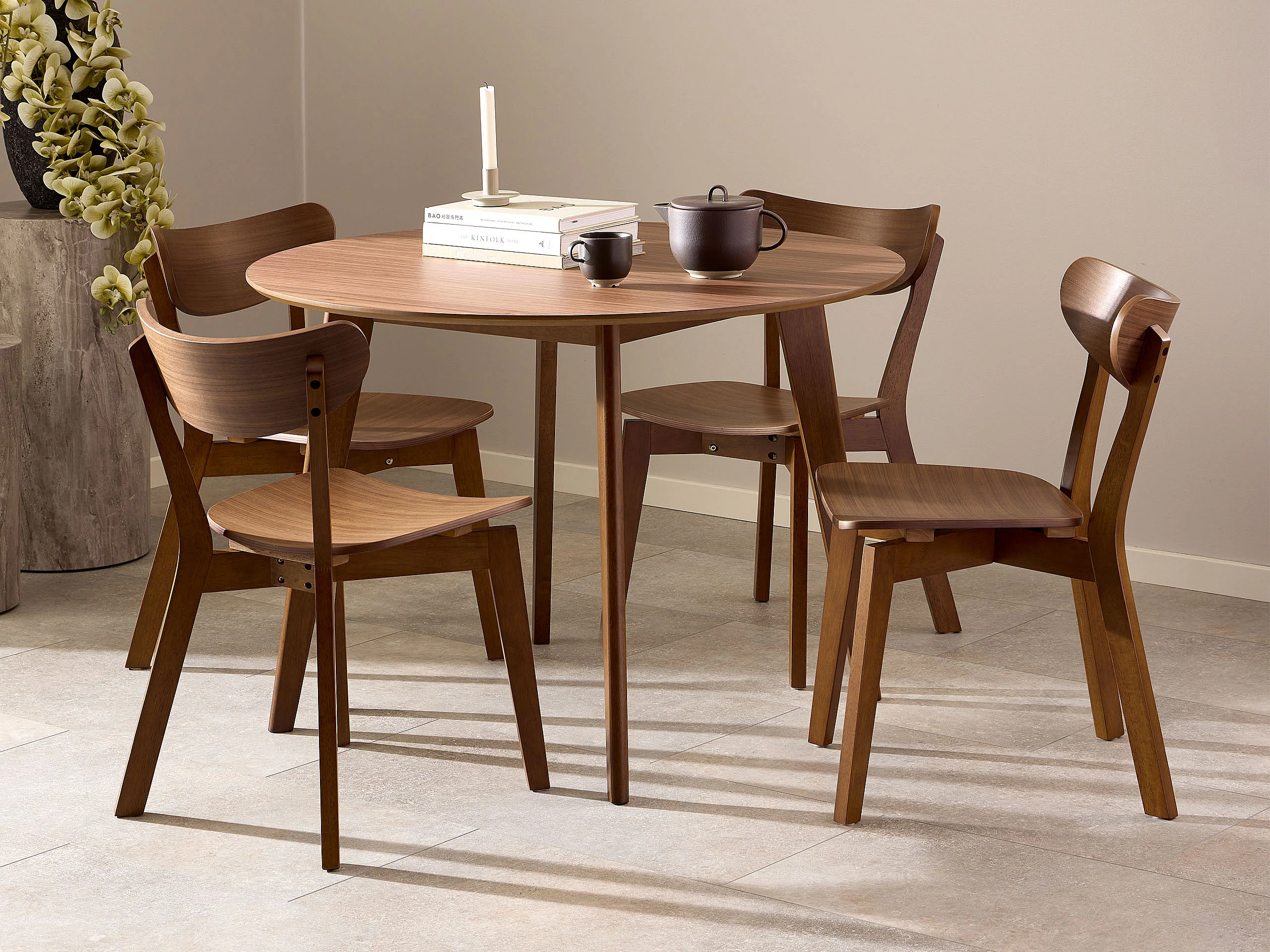 Zestaw jadalniany Lumo – stół okrągły z 4 krzesłami, kolor orzech włoski lakierowany