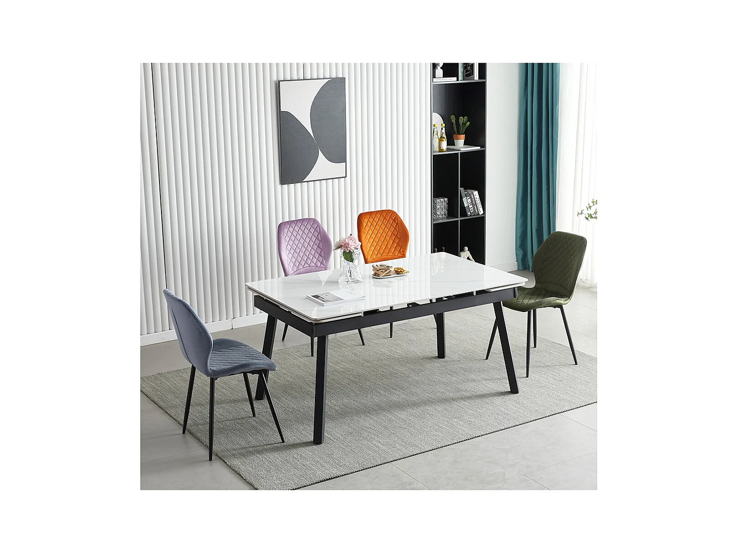 Zestaw krzeseł 4 szt. - tkanina i czarny metal - zielony - LASTA