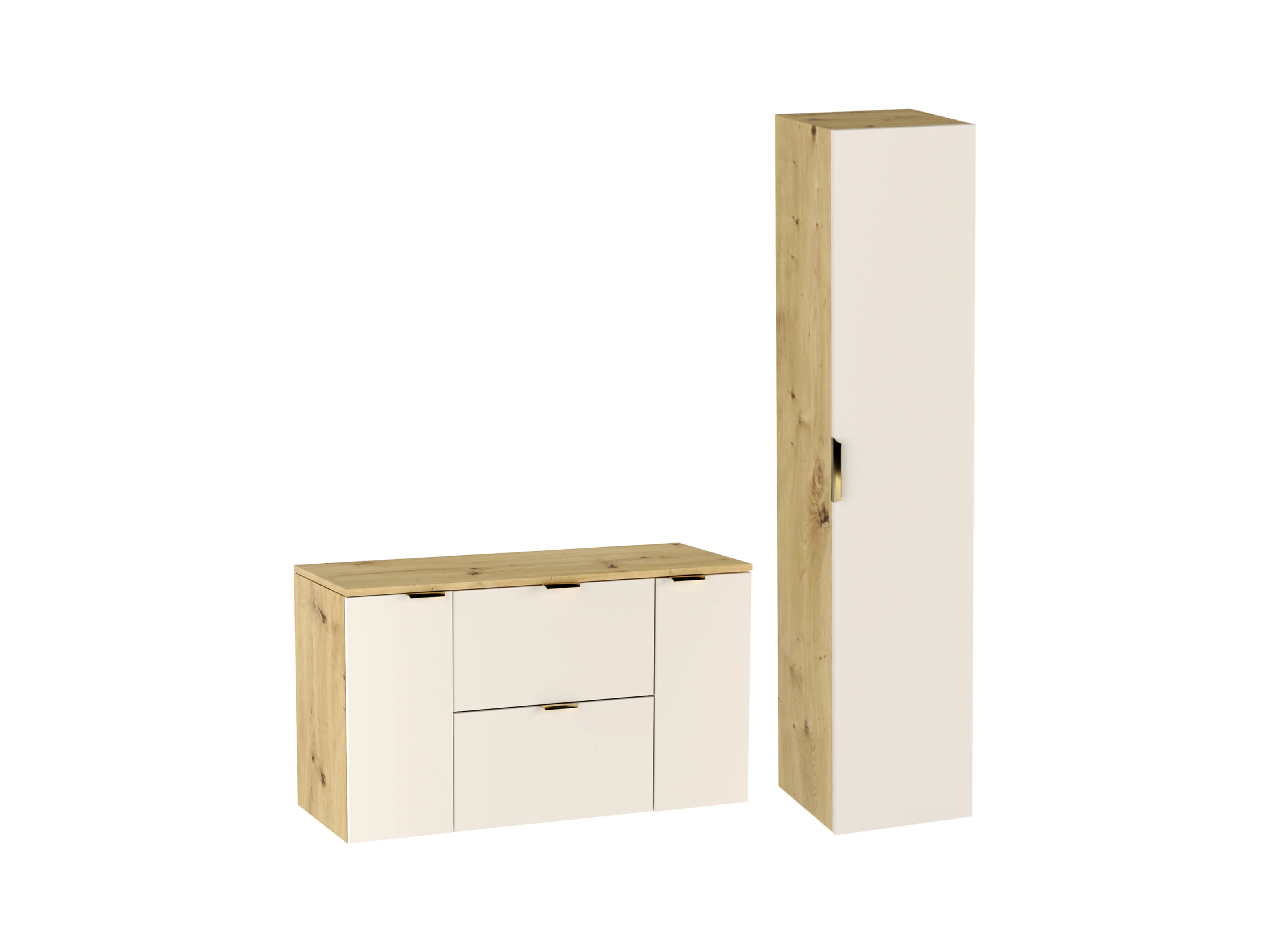 Zestaw Łazienkowy 120cm Szafka z Blatem Słupek Kaszmir / Dąb Orzech Orio