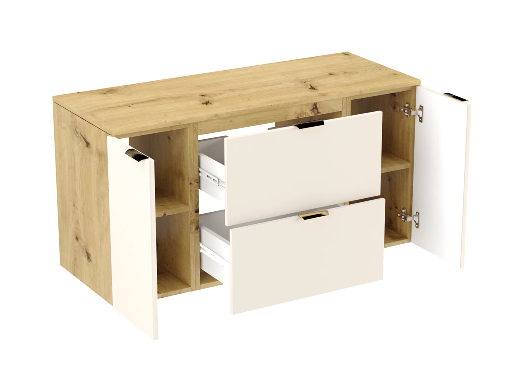 Szafka łazienkowa wisząca z umywalką do zabudowy i kolumną - Jasny naturalny - 120 cm - NISAYA