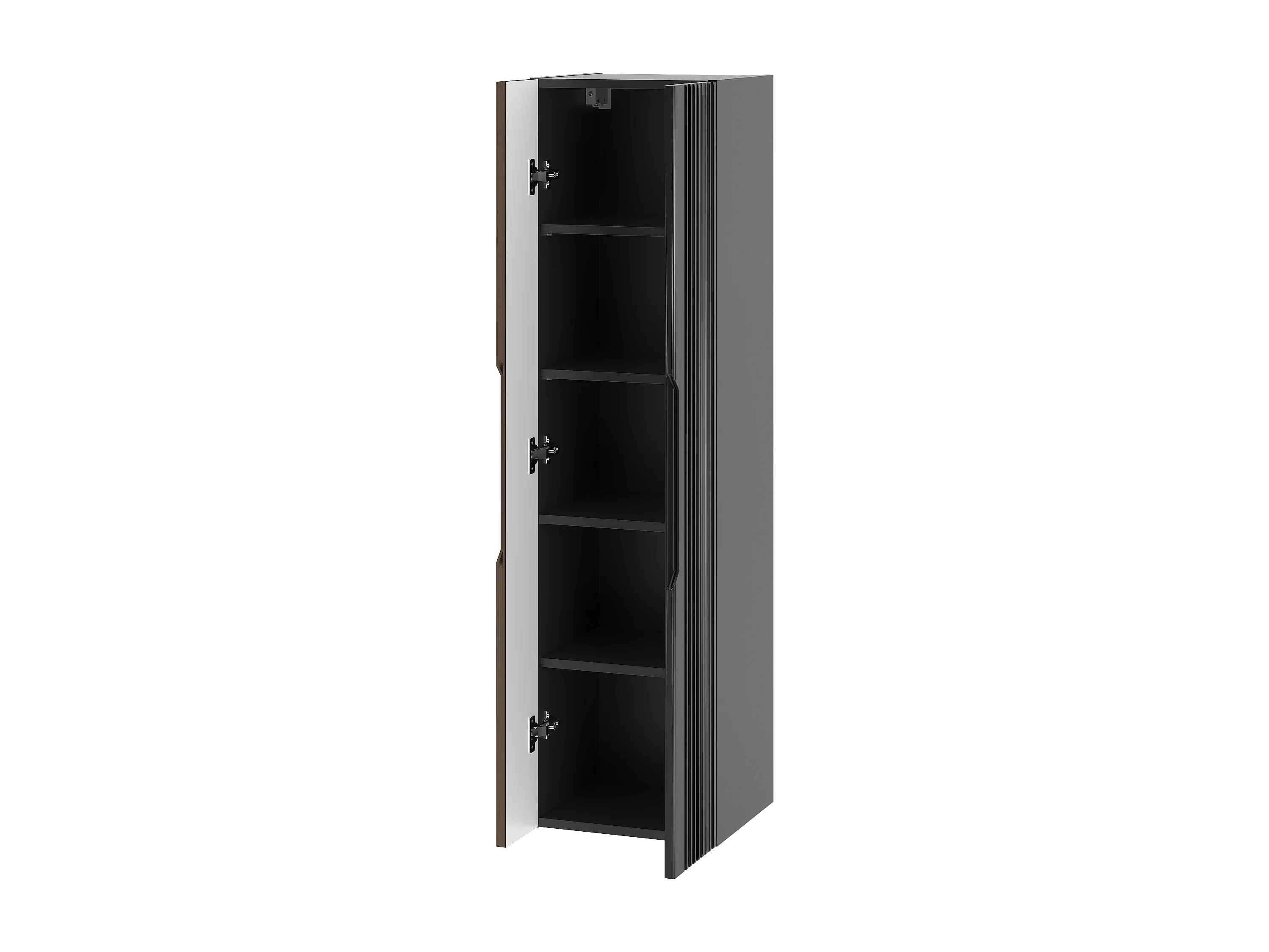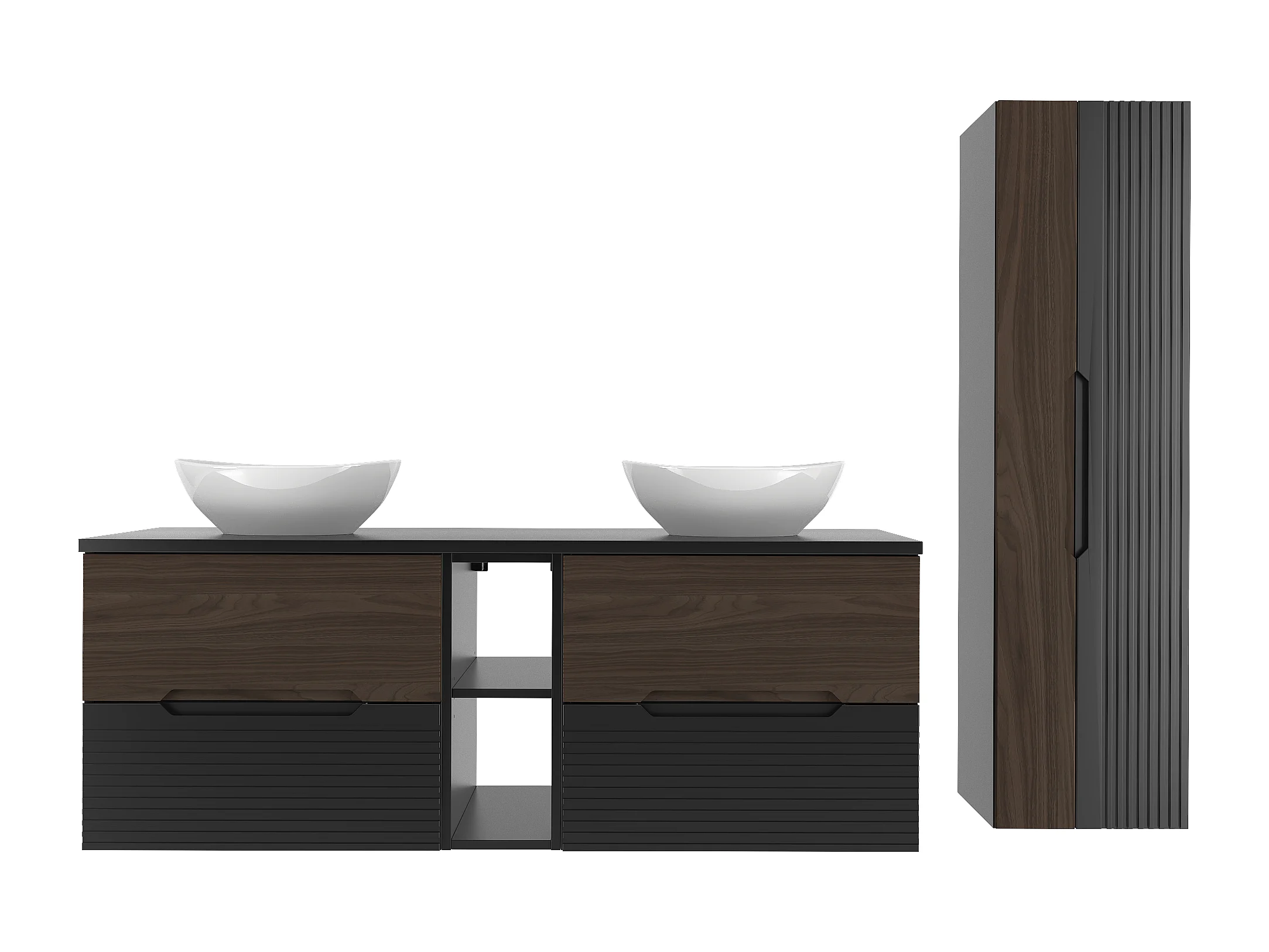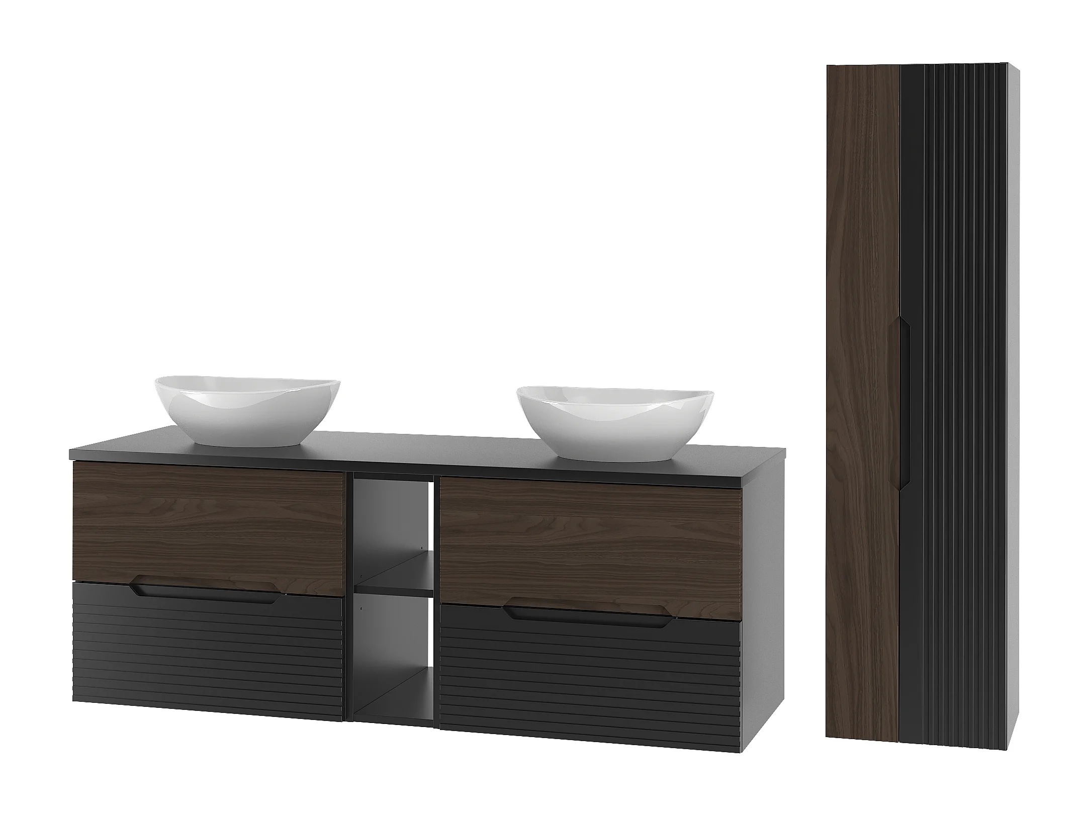Zestaw Łazienkowy 140cm Szafka z Blatem Regał Umywalka Słupek Czarny Mat / Orzech Avella