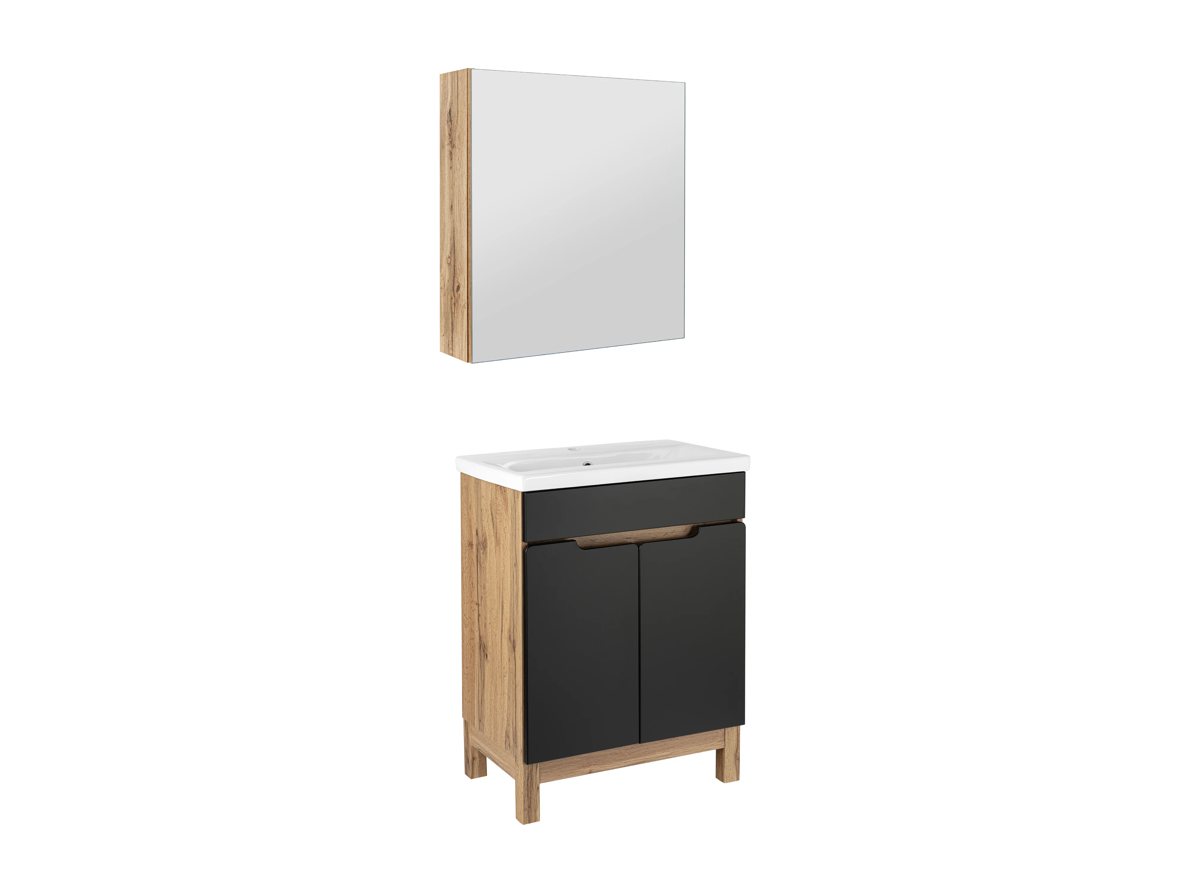 Zestaw Łazienkowy 60cm 2D Alma Szafka z Lustrem Dąb Wotan / Czarny Mat