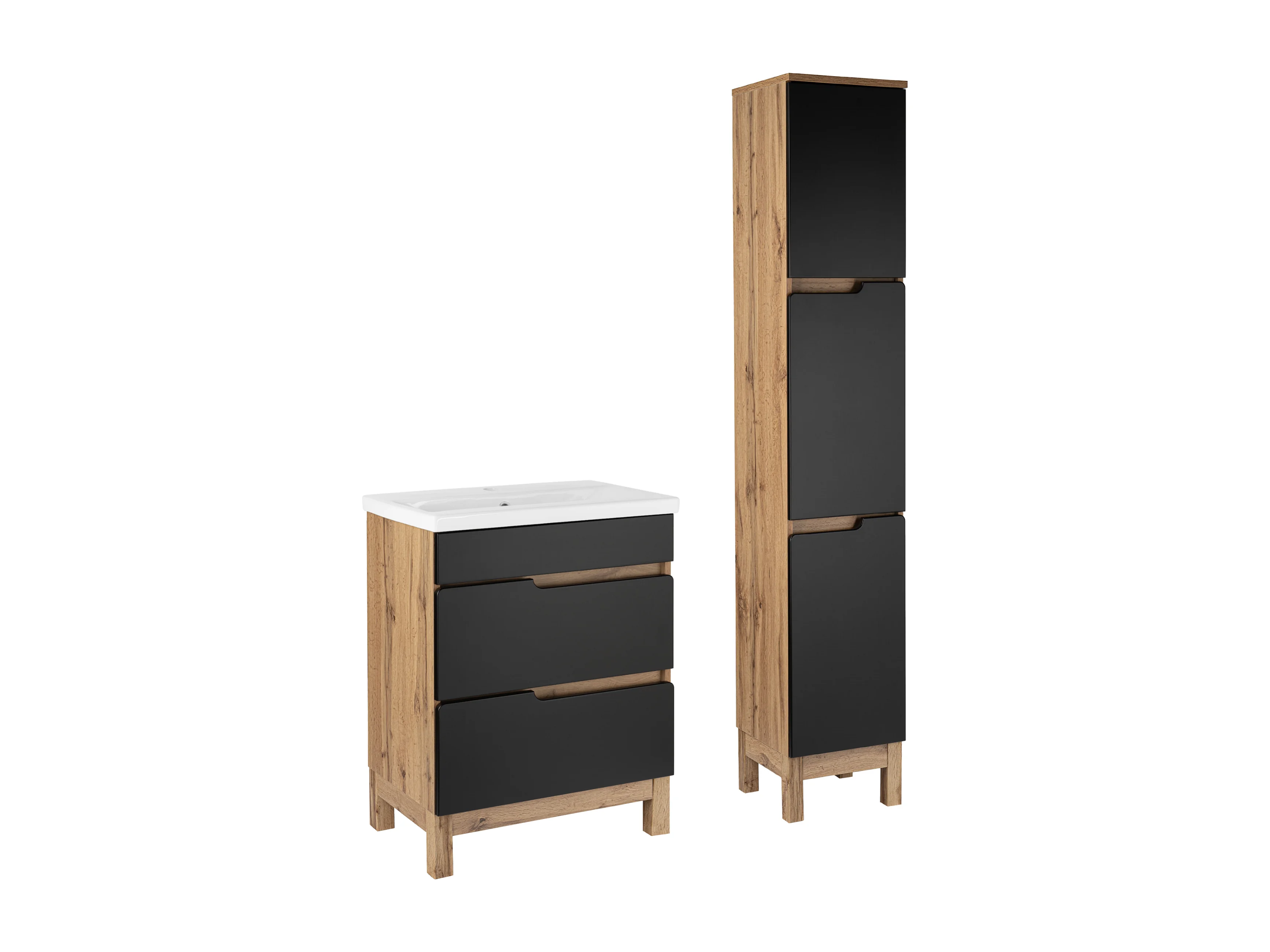 Zestaw Łazienkowy 60cm 2D Alma Słupek Dąb Wotan / Czarny Mat