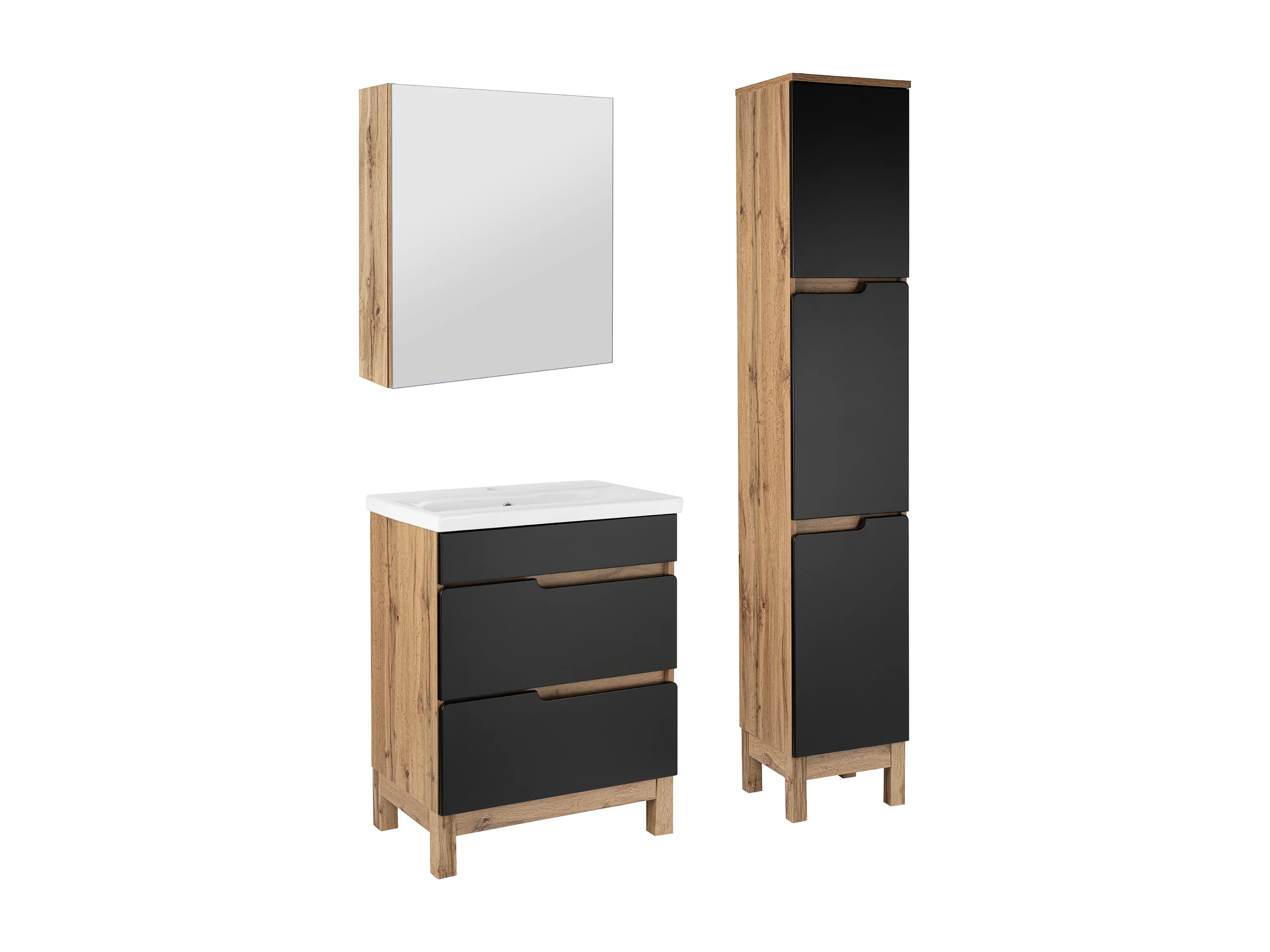 Zestaw Łazienkowy 60cm 2D Alma Słupki Szafka z Lustrem Dąb Wotan / Czarny Mat