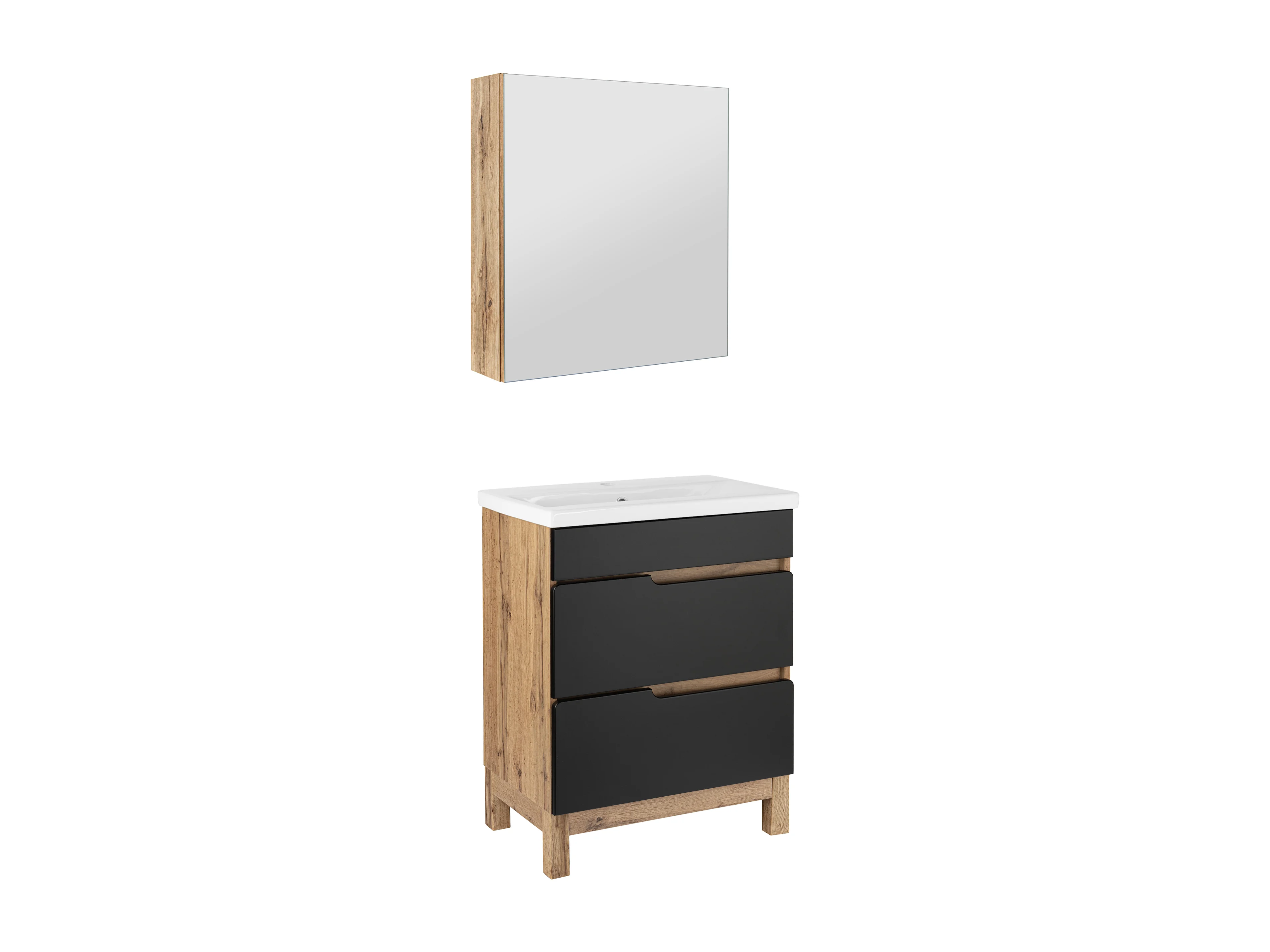 Zestaw Łazienkowy 60cm 2D Alma Szafka z Lustrem Dąb Wotan / Czarny Mat