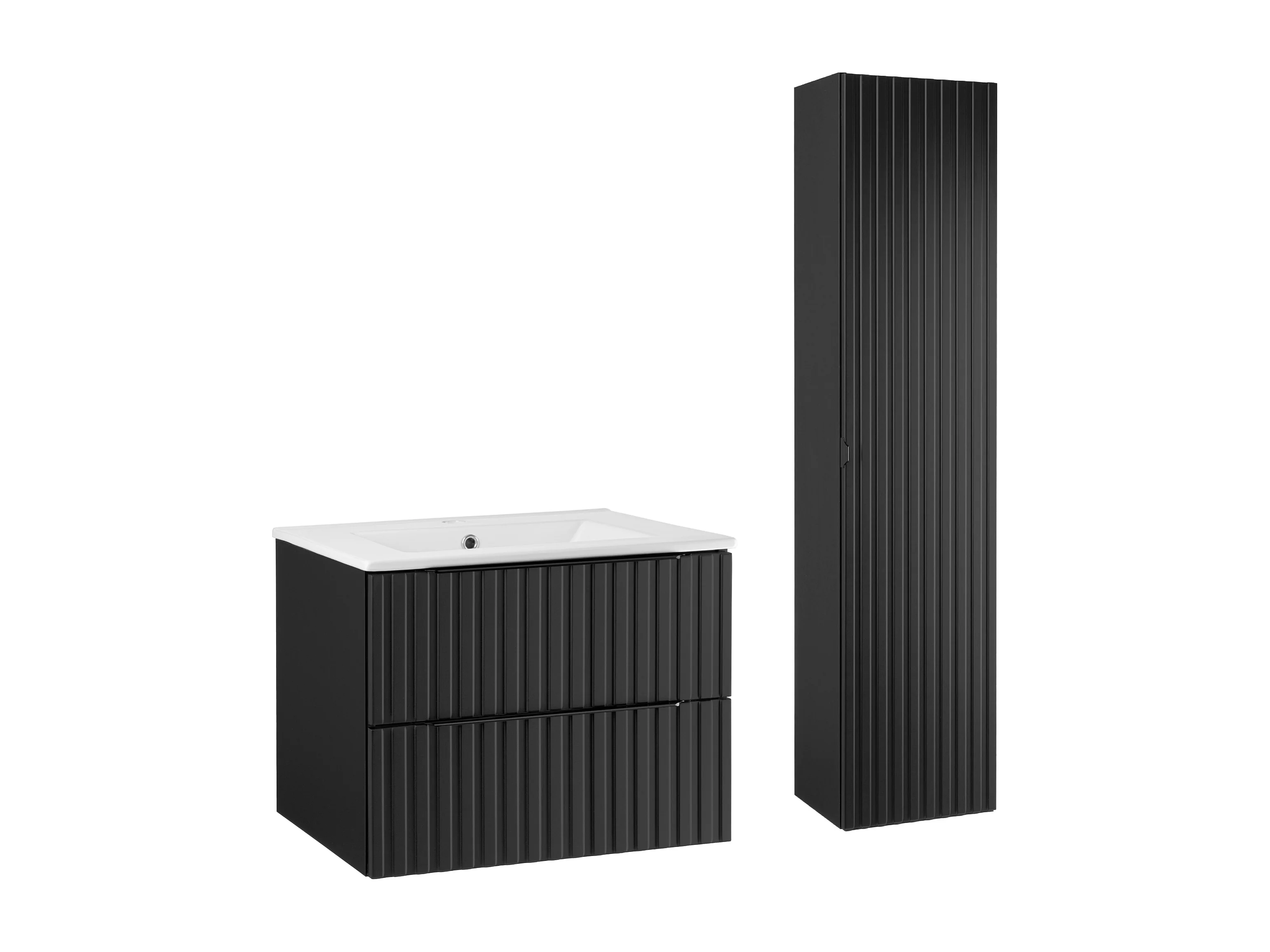 Zestaw Łazienkowy 60cm Ryflowane Fronty Czarny Amy Słupek