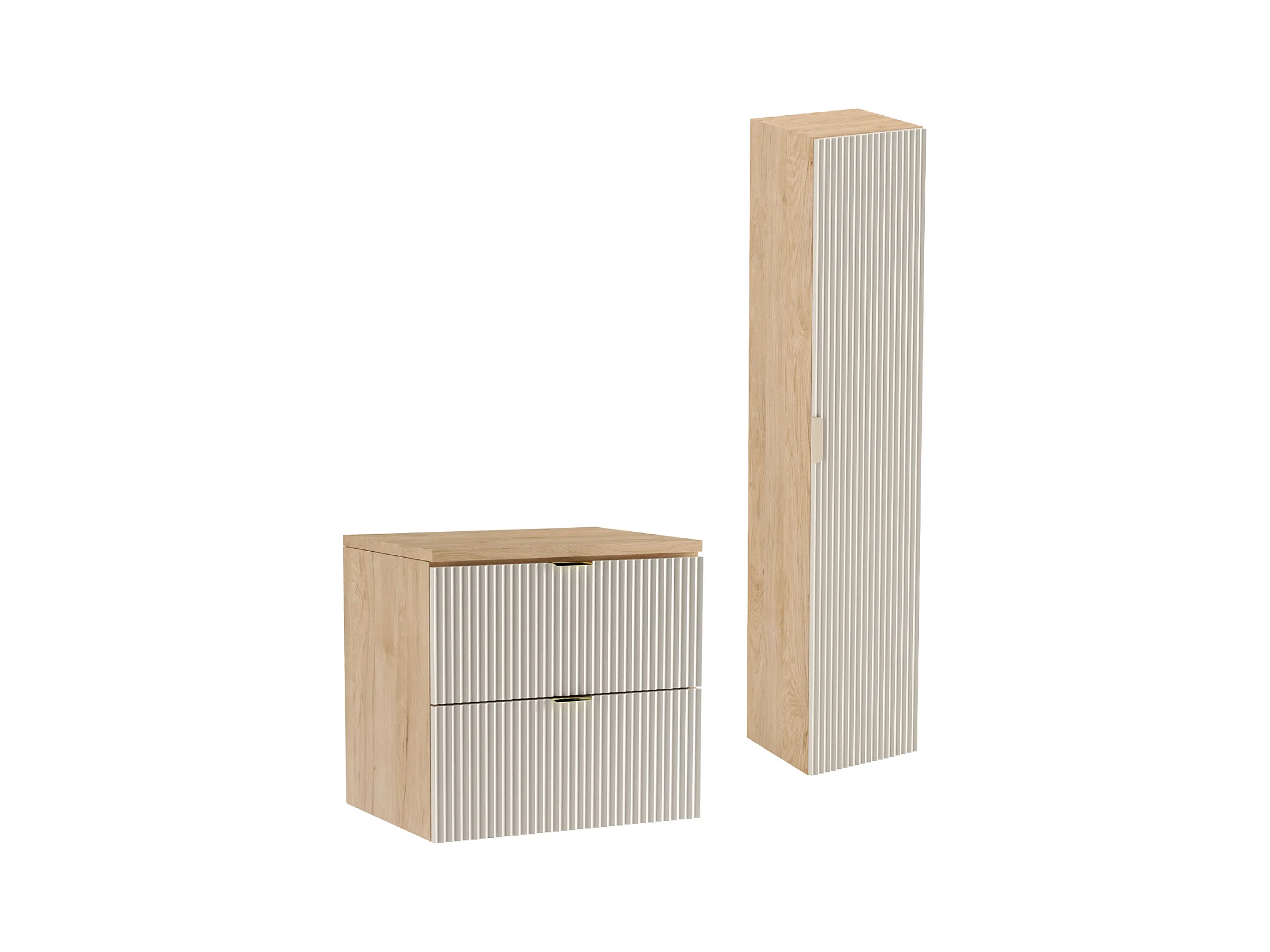 Zestaw Łazienkowy 60cm Szafka Blat Słupek Ryflowane Fronty Kaszmir / Dąb Orzech