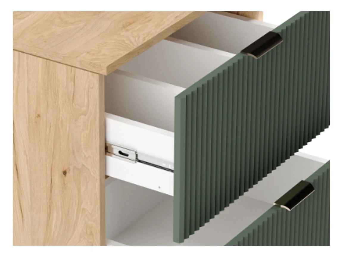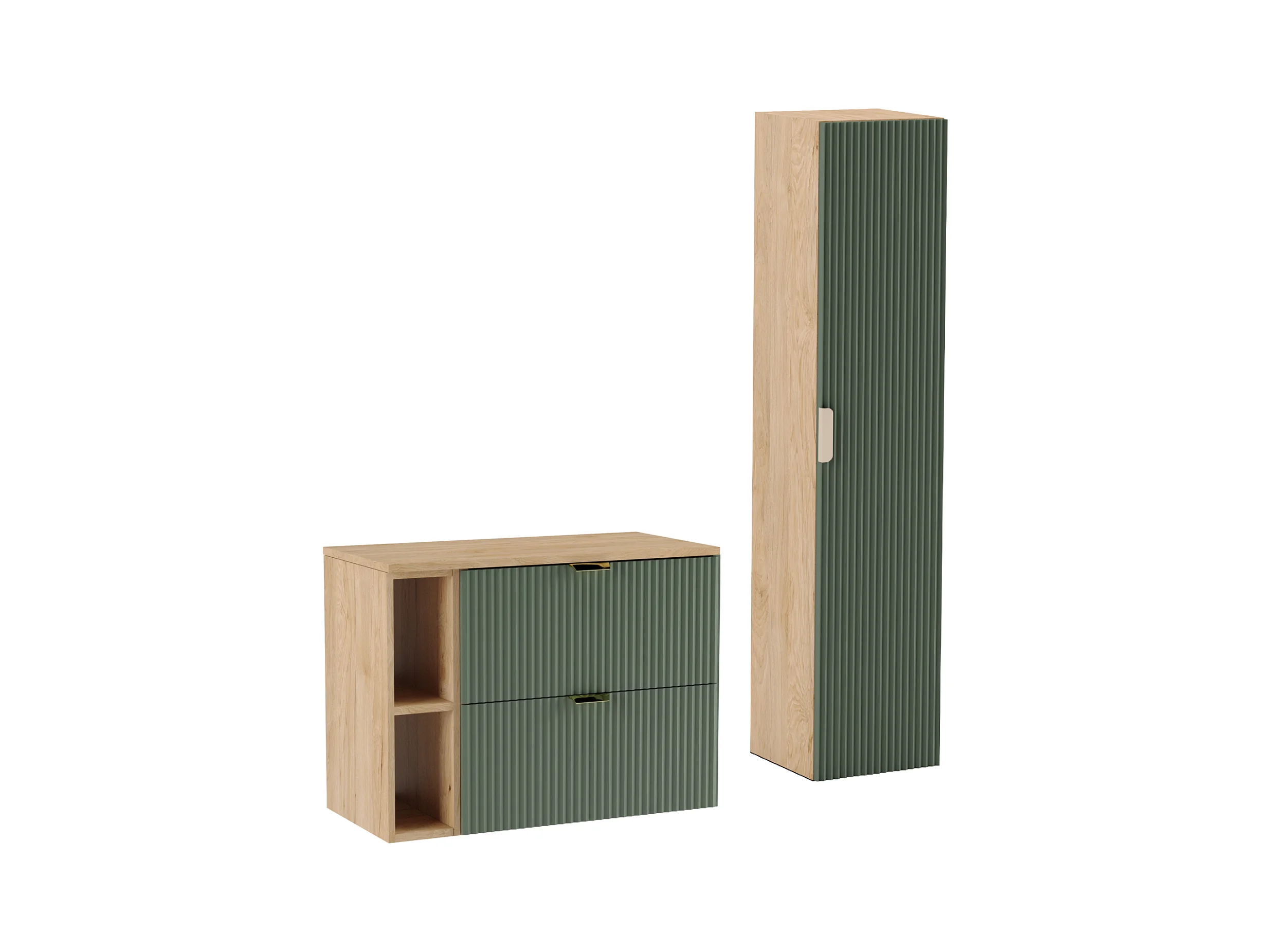 Zestaw Łazienkowy 80cm Szafka Blat Regał Słupek Ryflowane Fronty Zielony / Dąb Orzech