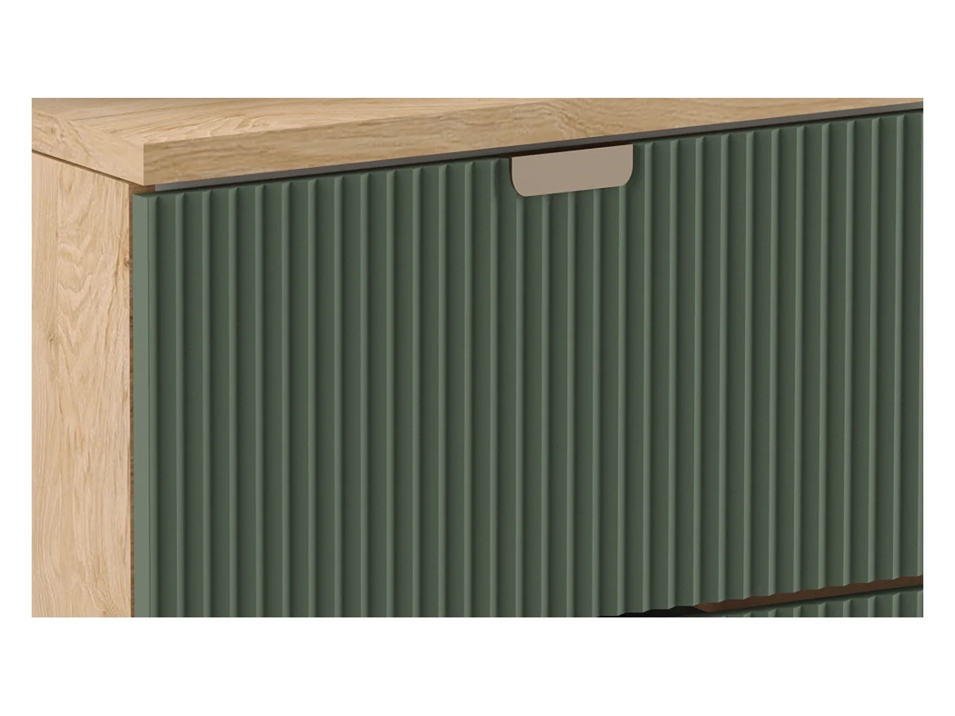 Wisząca szafka pod umywalkę prążkowana z umywalką nablatową i słupkiem - Matowa zieleń - 80 cm - ZEVINI