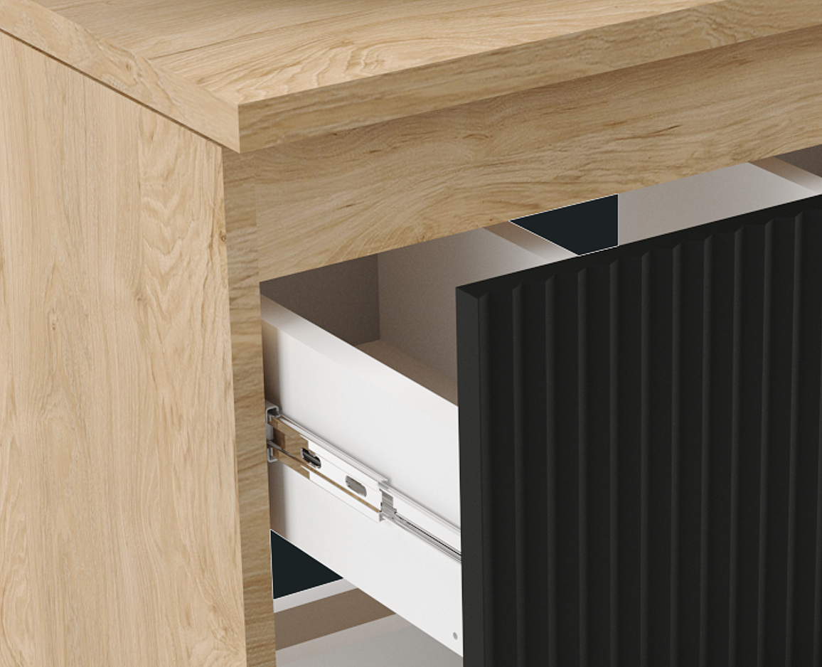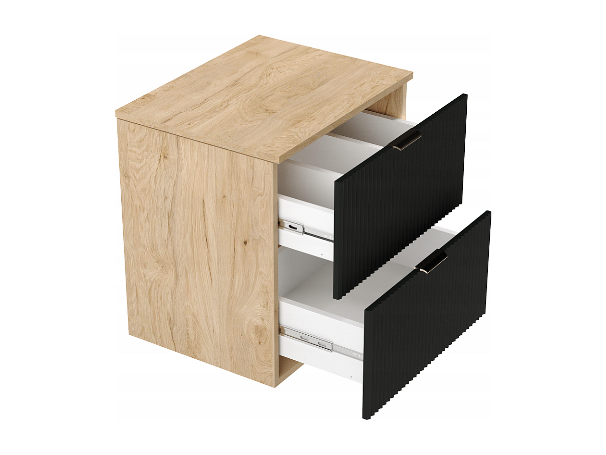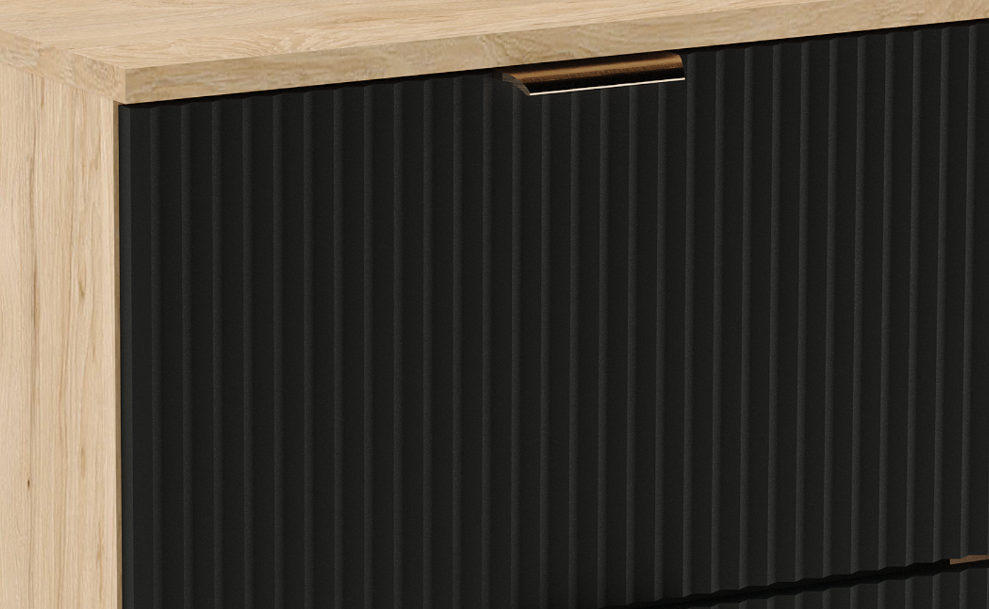 Zestaw Łazienkowy 80cm Szafka Blat Słupek Ryflowane Fronty Czarny / Dąb Orzech