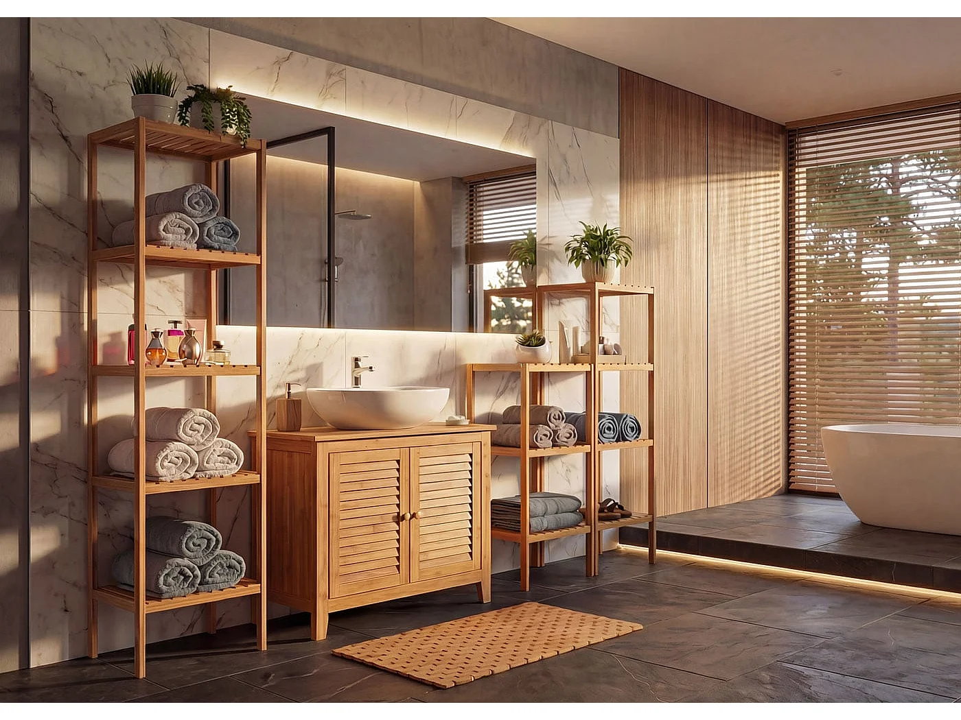 Zestaw mebli łazienkowych z oświetleniem led
