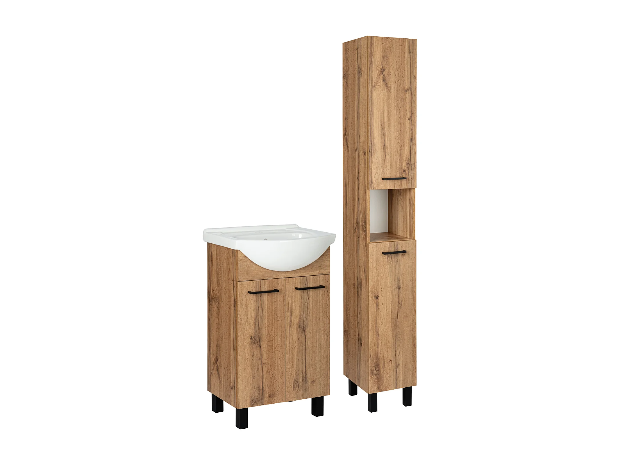 Zestaw Łazienkowy Szafka z Umywalką 50cm Słupek 30cm Dąb Wotan Lupo Wotan